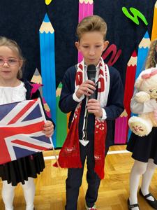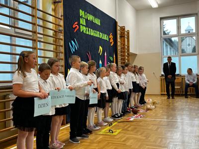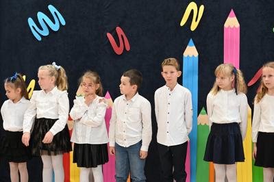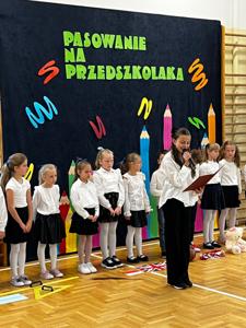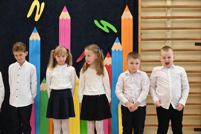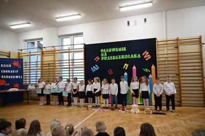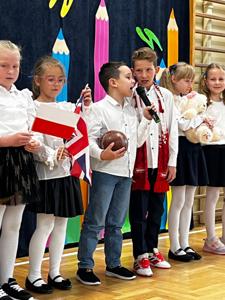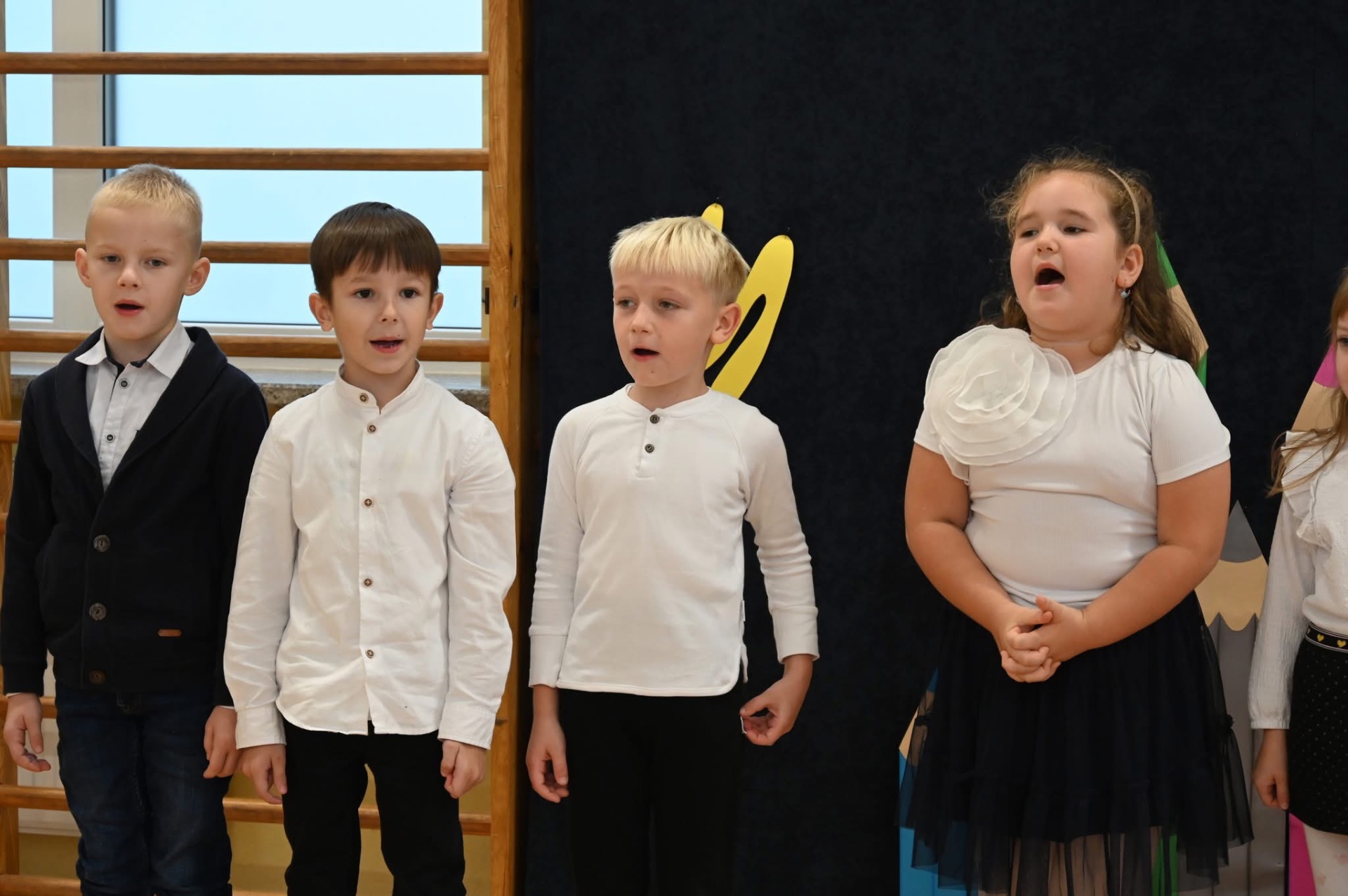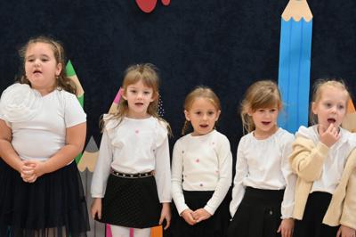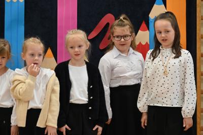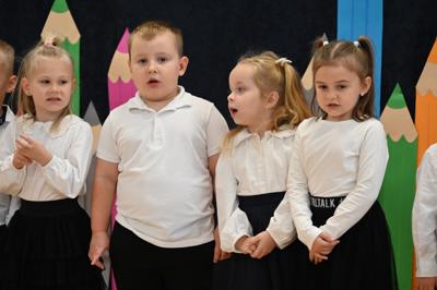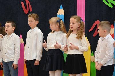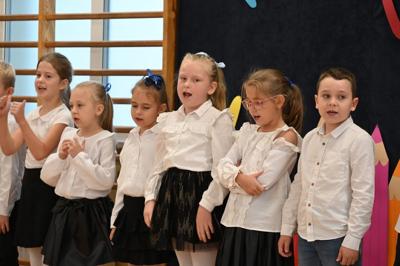 Muzyczne życzenia złożyła grupa przedszkolna pod kierunkiem pani wychowawczyni Ewy Błachut oraz zerówka pod opieką wychowawczyni Anny Nowackiej - Kiełbik.