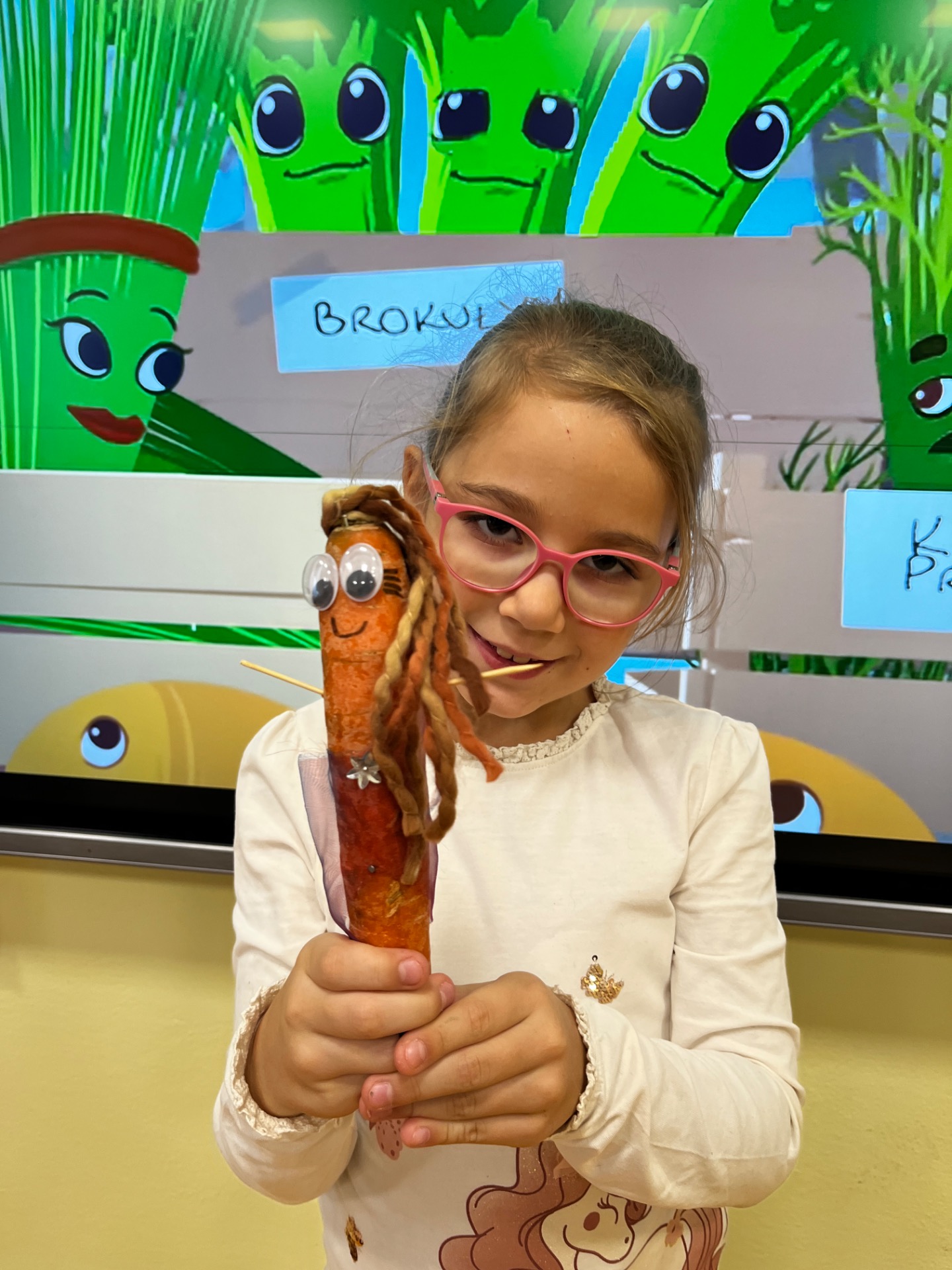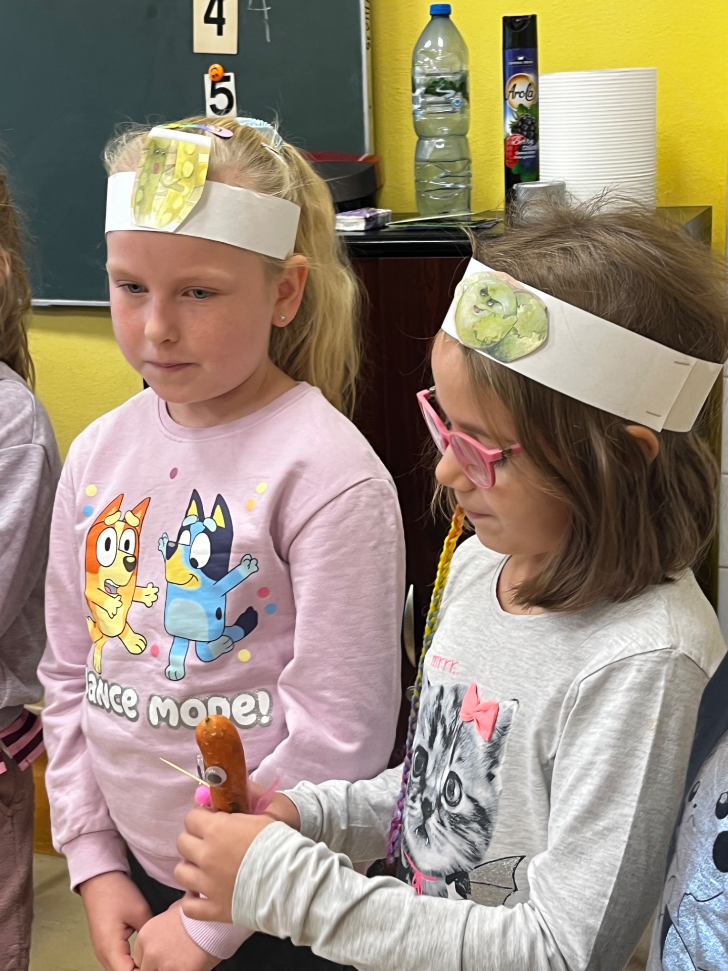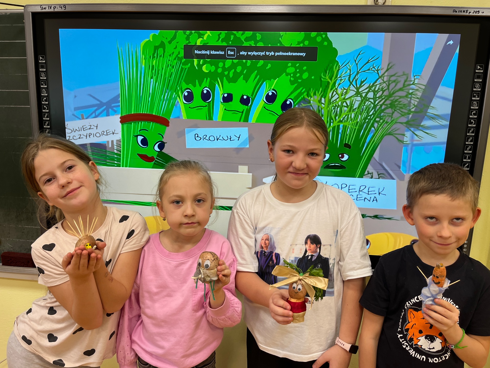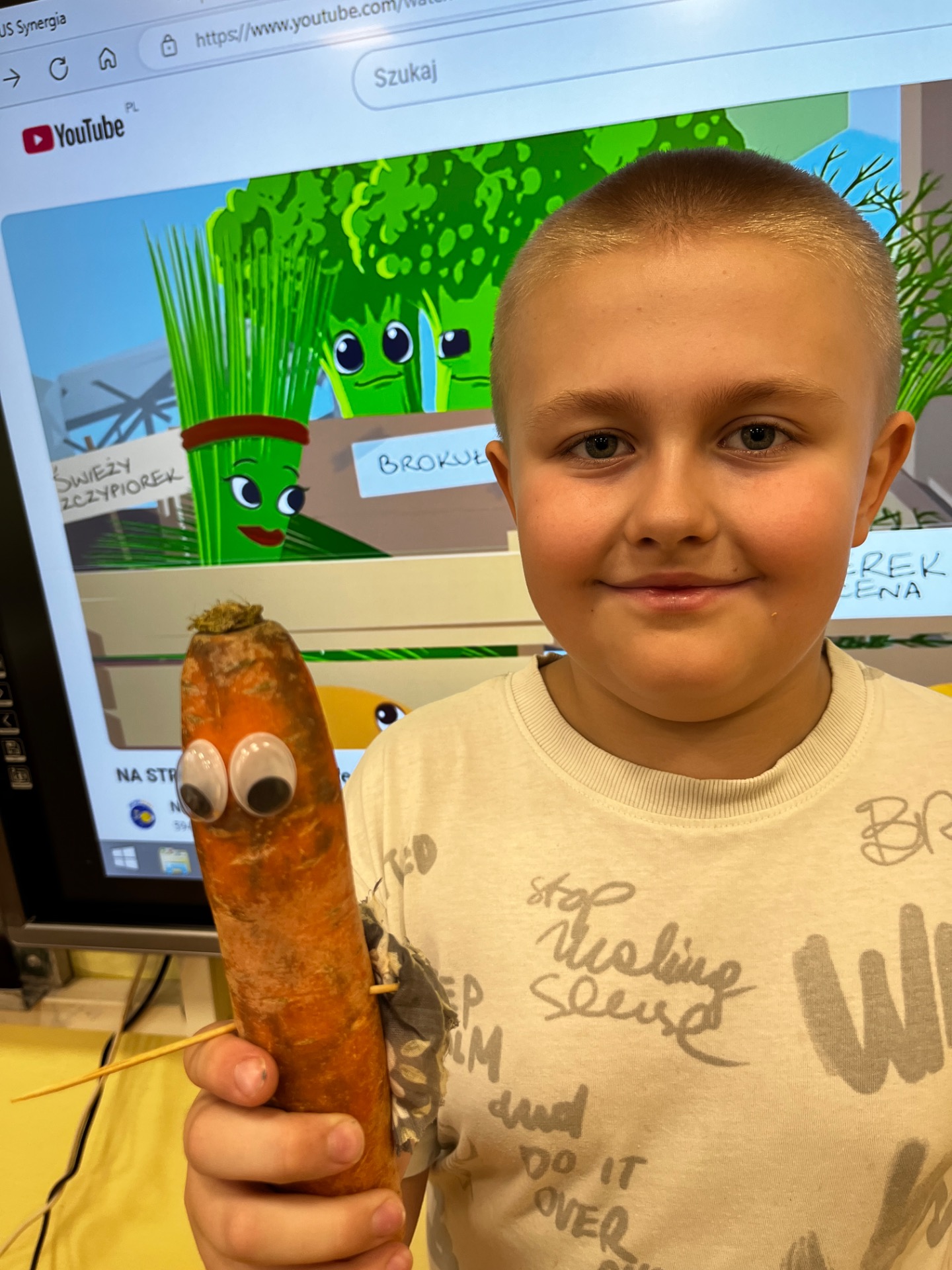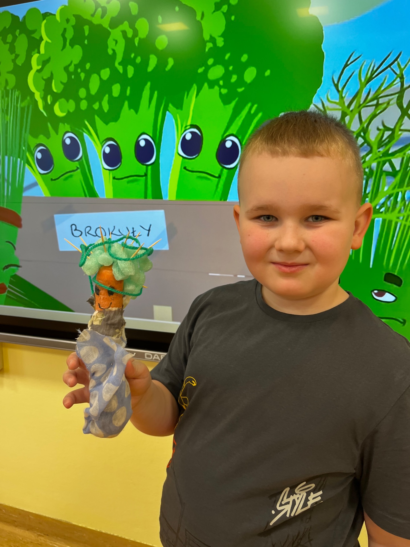 Dzieci nie tylko poznały piramidę zdrowego żywienia , ale również grupowały produkty, w których są witaminy🍓🫐🍍, ułożyły własny, zdrowy jadłospis🥬🍆🌽, zrobiły kukiełki z warzyw oraz zainscenizowały wiersz Jana Brzechwy pt. „Na straganie”. 🍋🟩🍓🍑A w najbliższym czasie odbędzie się Dzień Zdrowego Śniadania , podczas którego uczniowie będą samodzielnie przygotowywać zdrowe kanapki i sałatki. 🥗🥗🥗