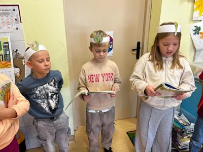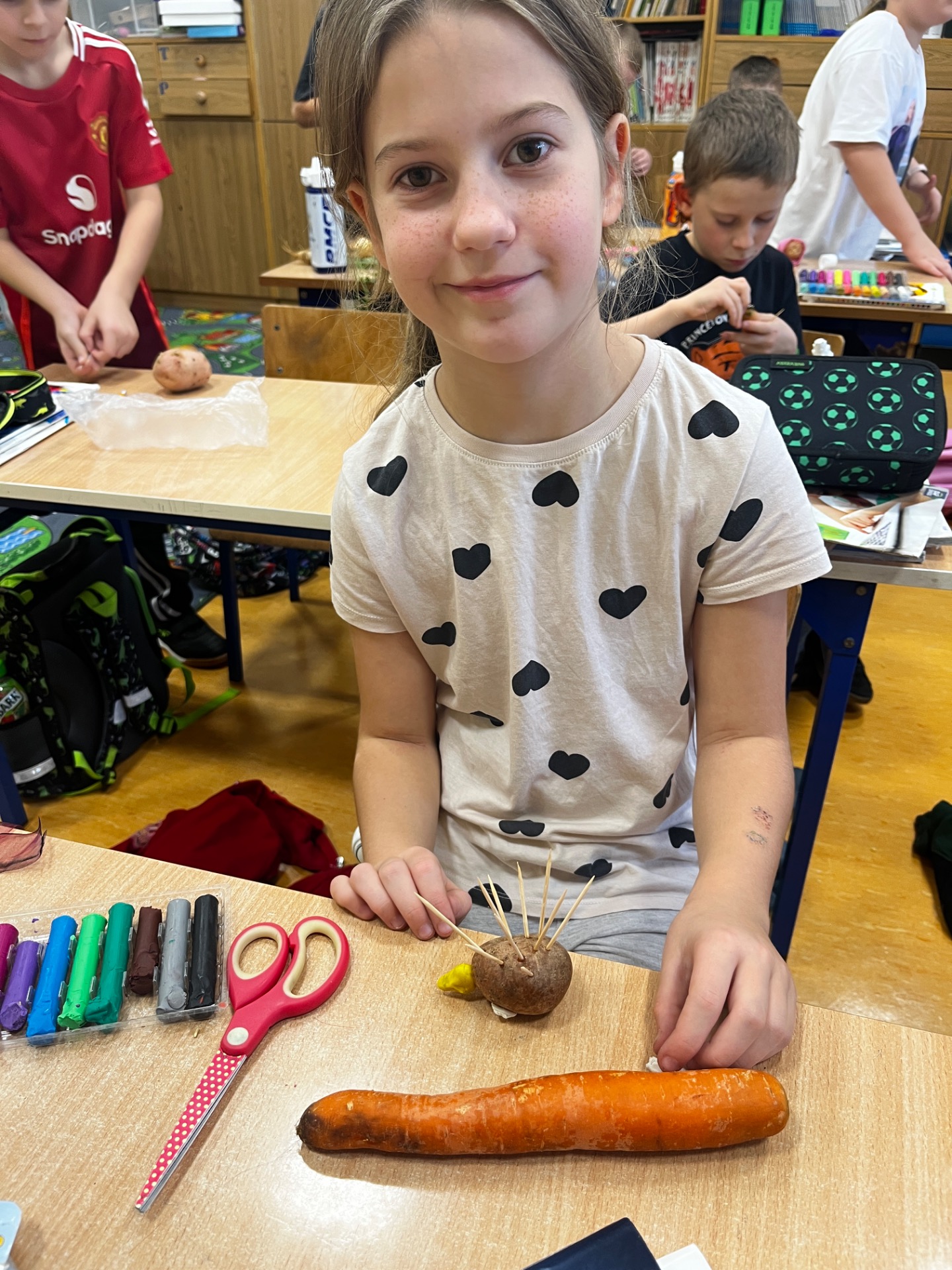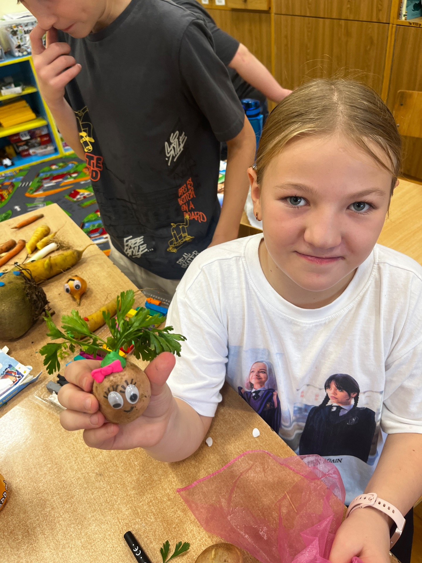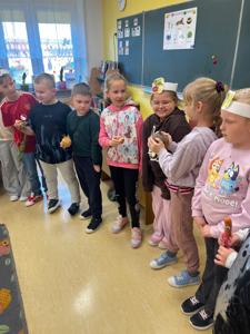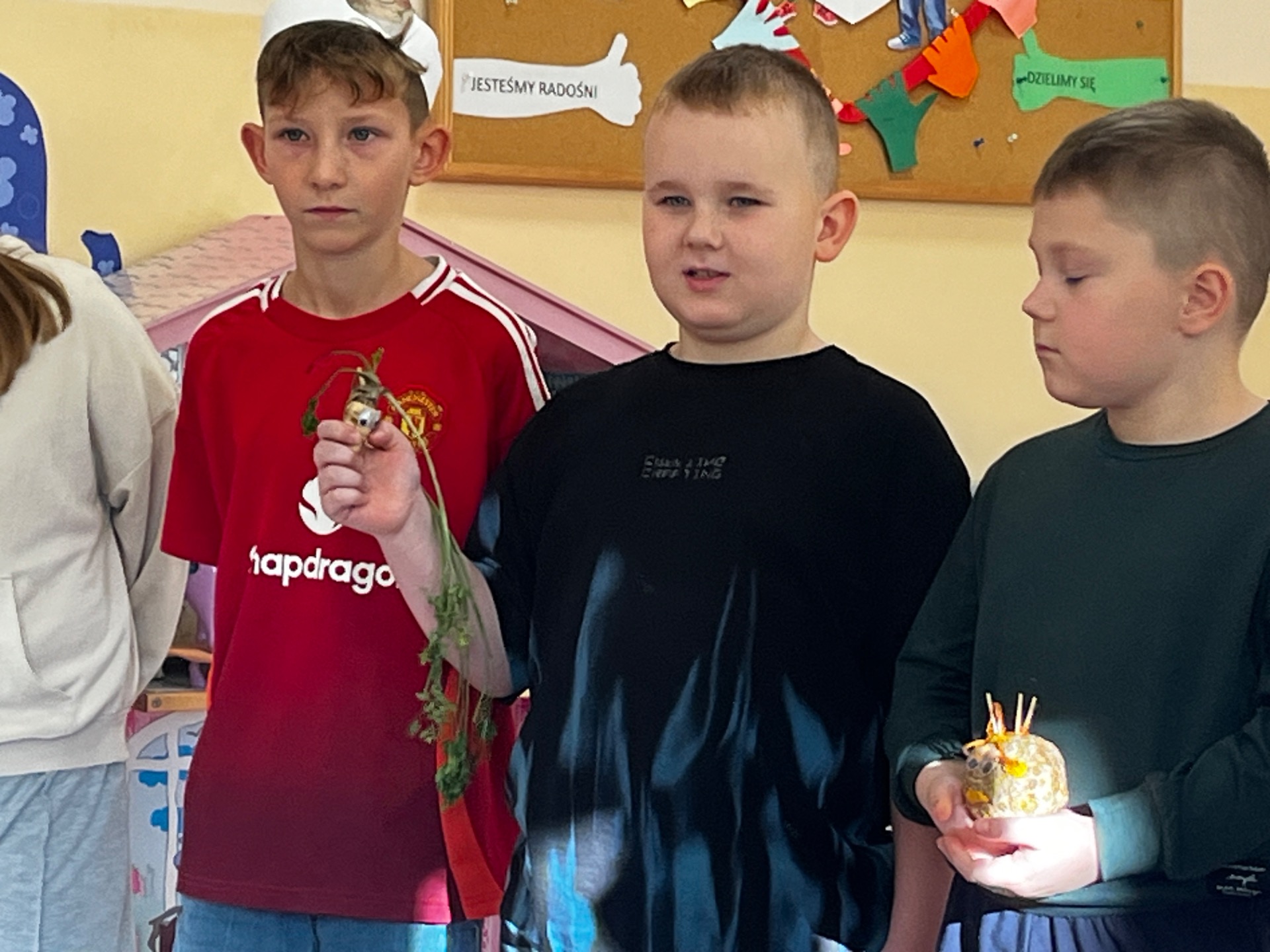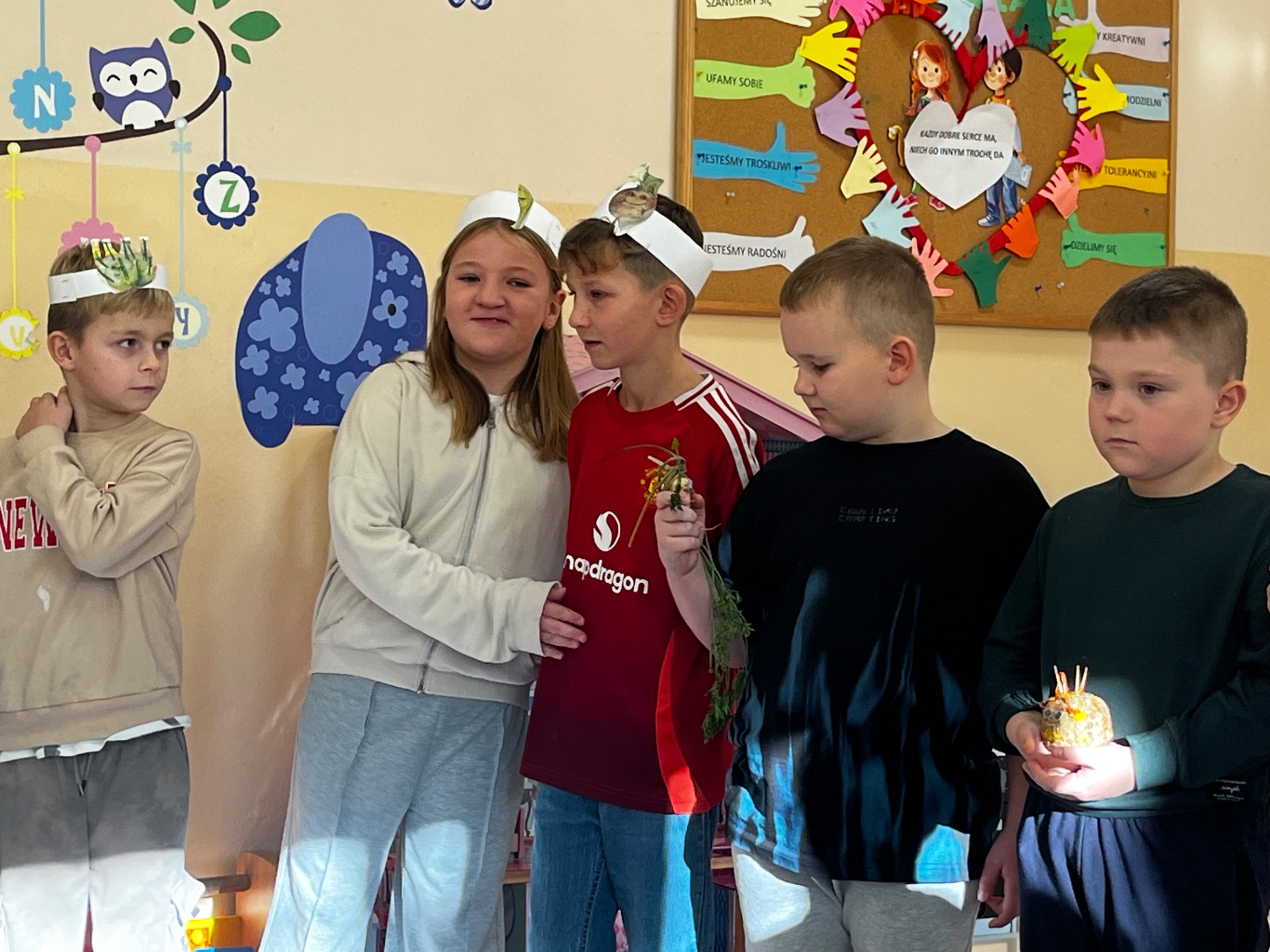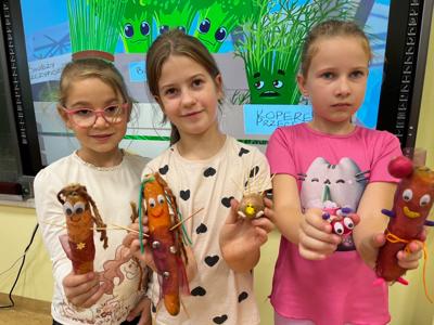 Dzieci nie tylko poznały piramidę zdrowego żywienia , ale również grupowały produkty, w których są witaminy🍓🫐🍍, ułożyły własny, zdrowy jadłospis🥬🍆🌽, zrobiły kukiełki z warzyw oraz zainscenizowały wiersz Jana Brzechwy pt. „Na straganie”. 🍋🟩🍓🍑A w najbliższym czasie odbędzie się Dzień Zdrowego Śniadania , podczas którego uczniowie będą samodzielnie przygotowywać zdrowe kanapki i sałatki. 🥗🥗🥗