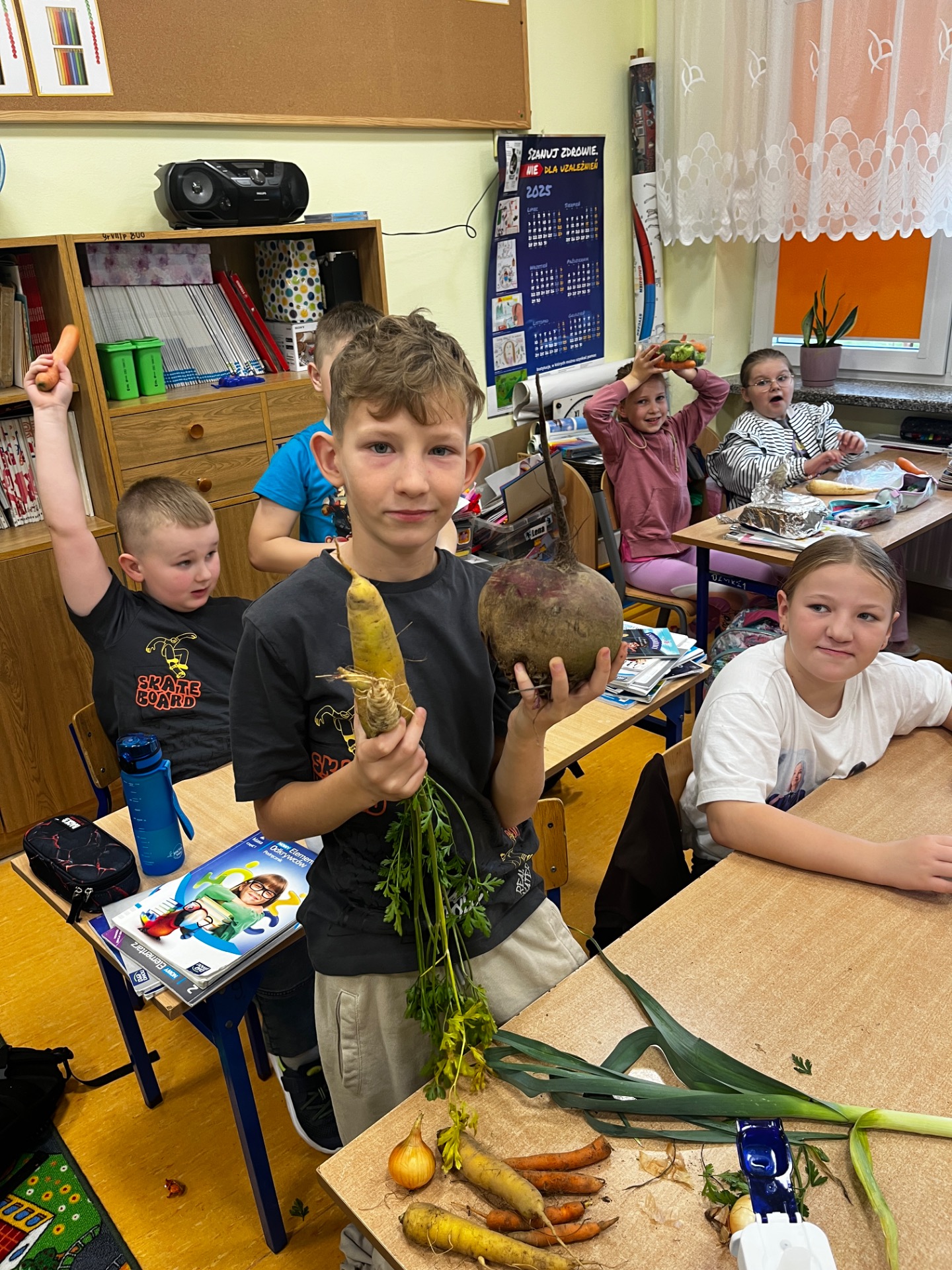 Od kilku dni uczniowie klasy 2 uczestniczą w zajęciach związanych ze zdrowym odżywianiem ! 🥕🥒🥑