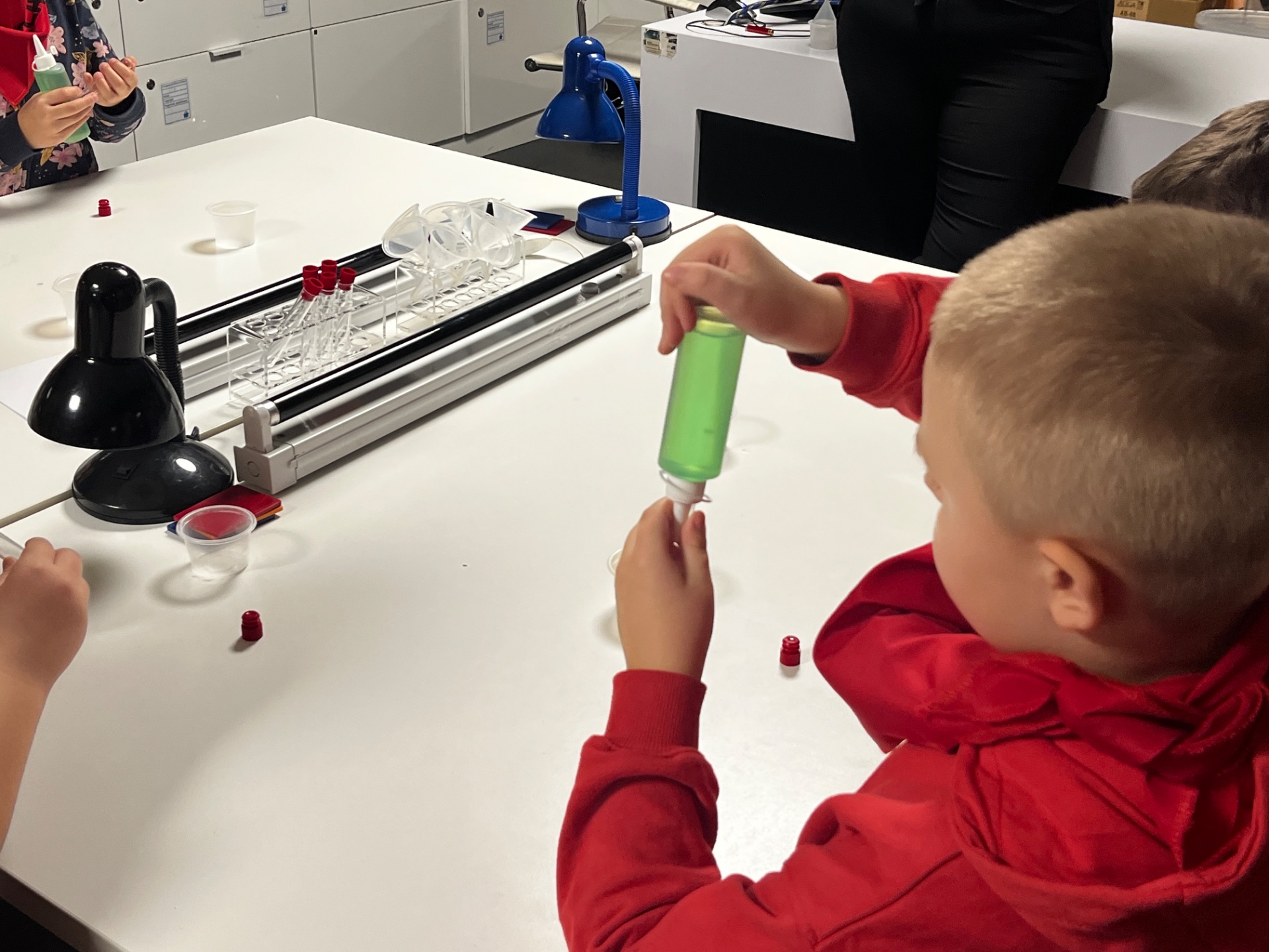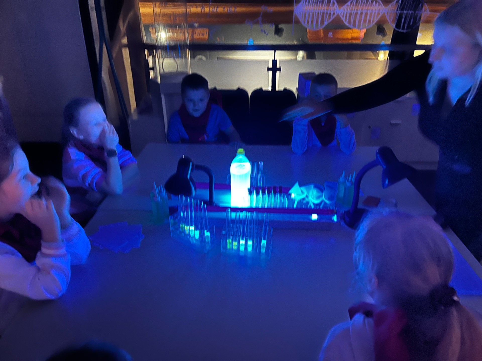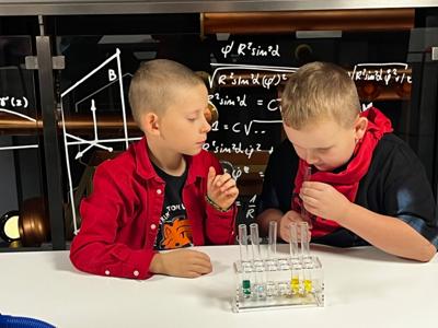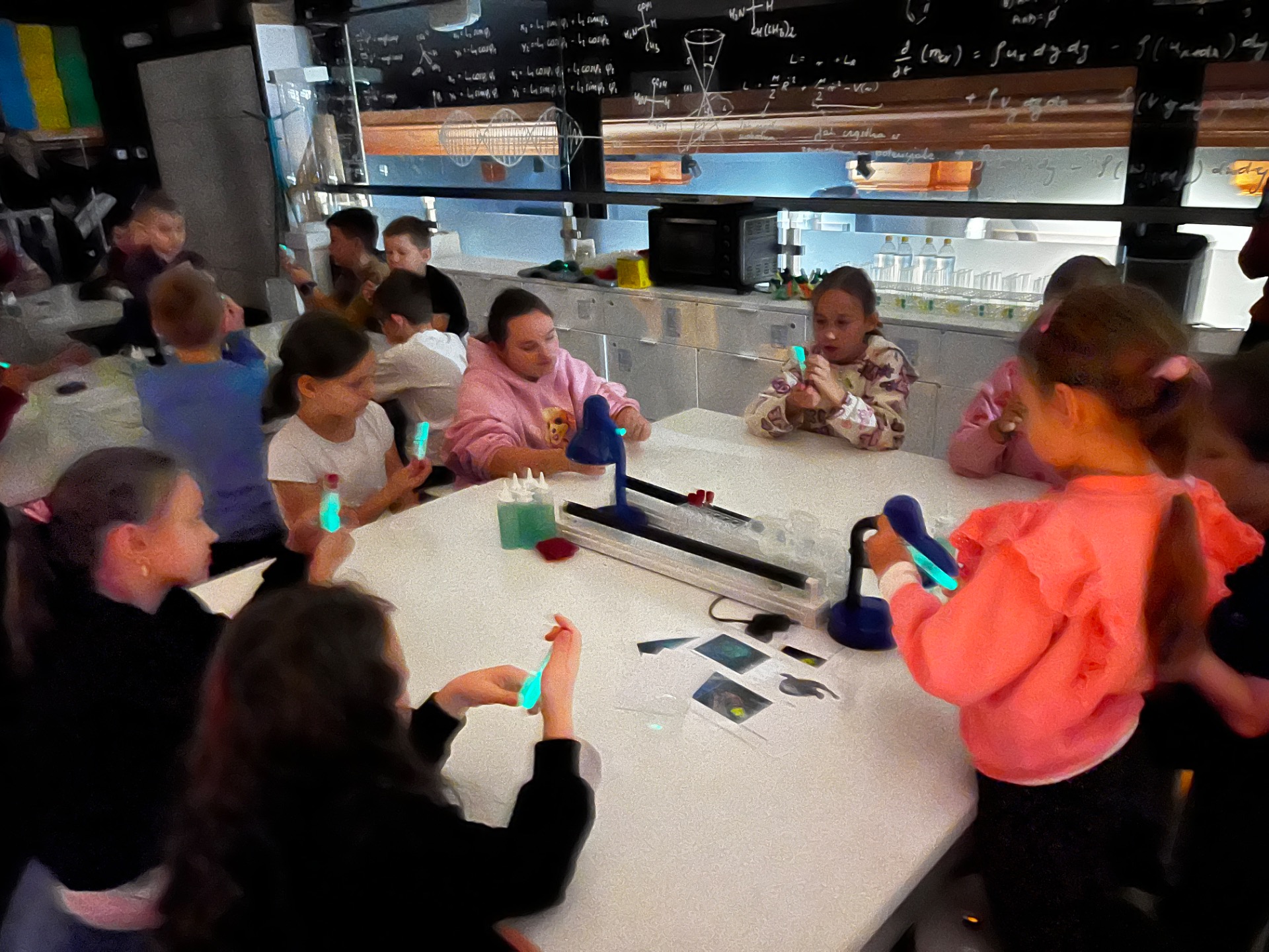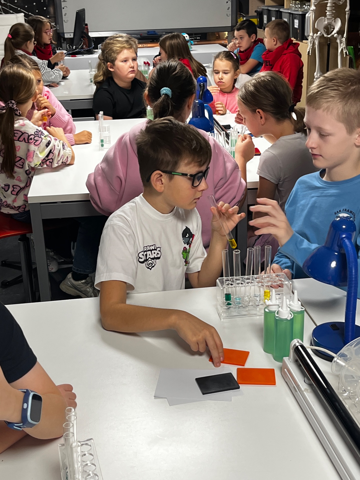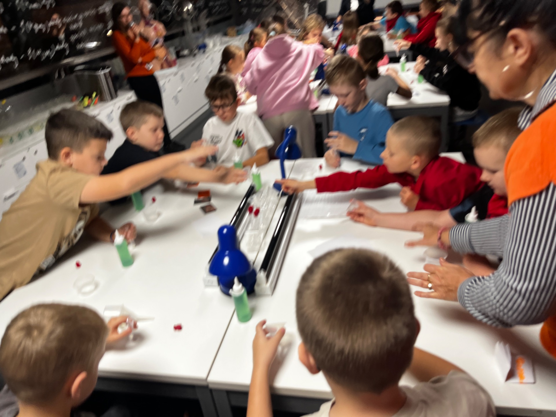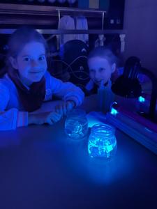 Dziś uczniowie z klasy 2 i 3 uczestniczyli w świetlnych warsztatach w Energetycznym Centrum Nauki w Kielcach . Dzieci były zachwycone świecącymi płynami i samodzielnie zrobionymi świecącymi probówkami .