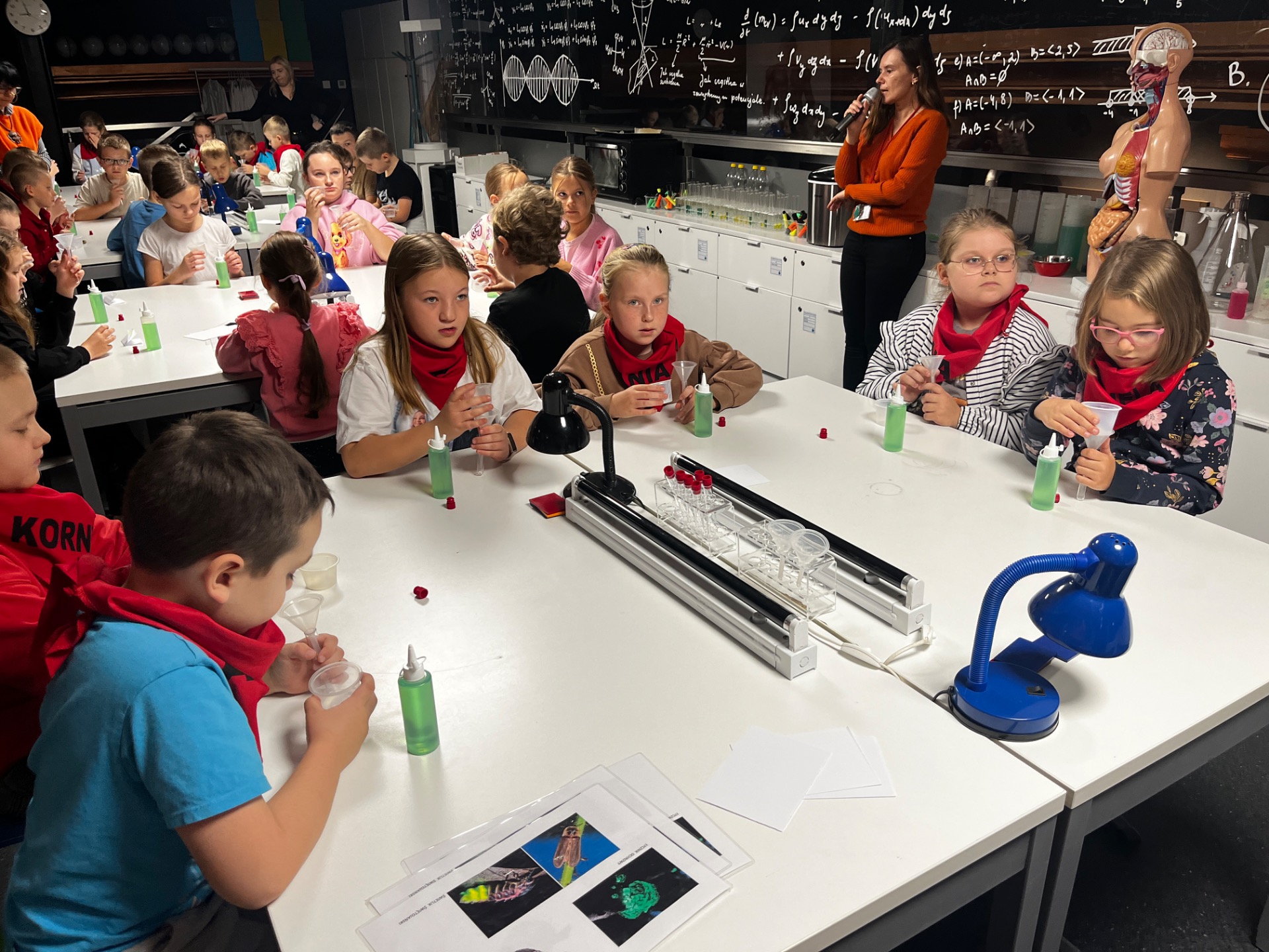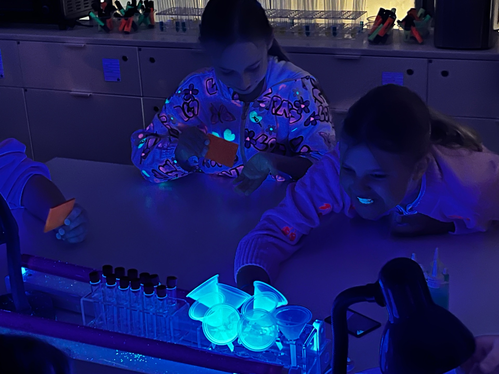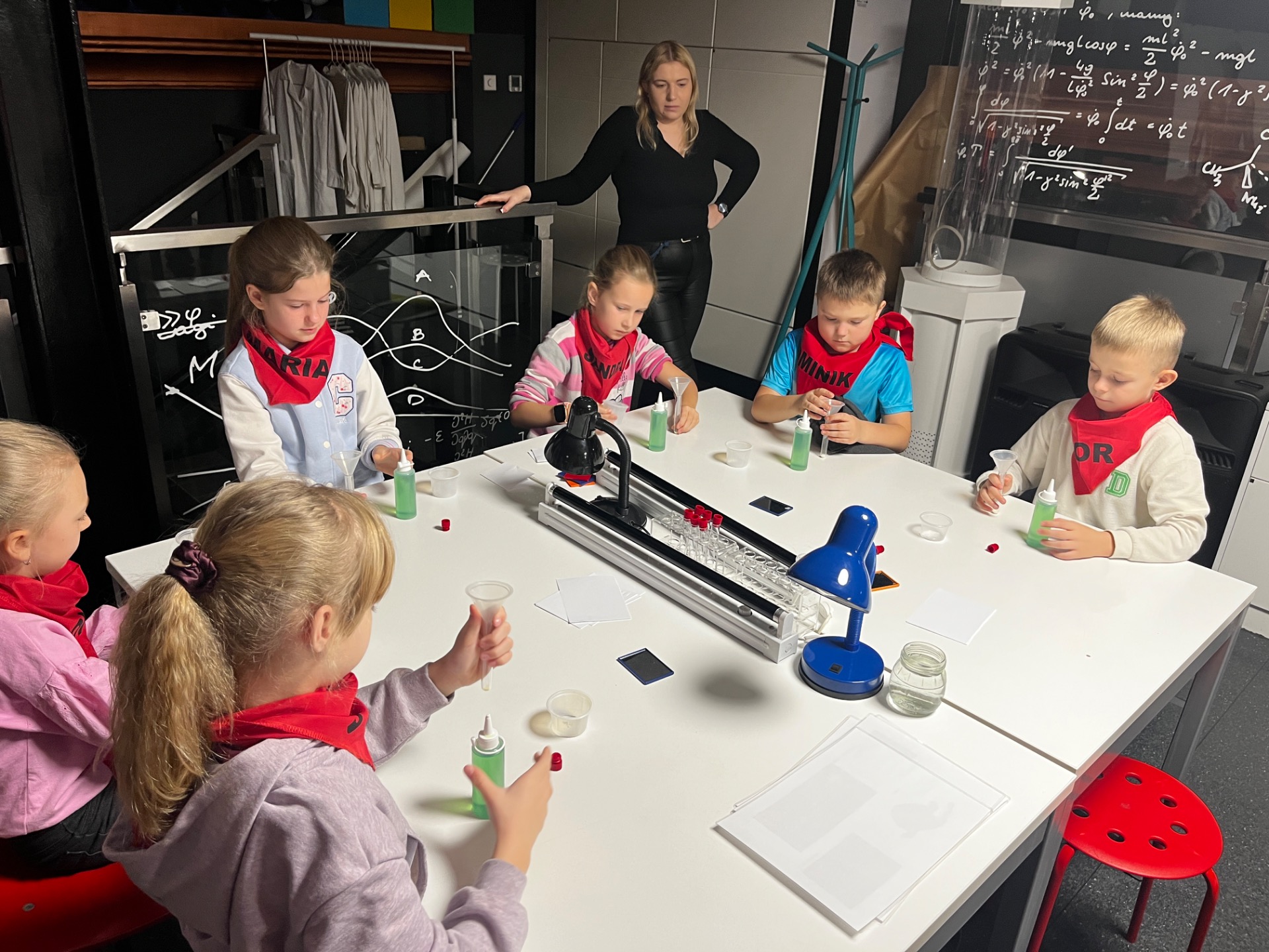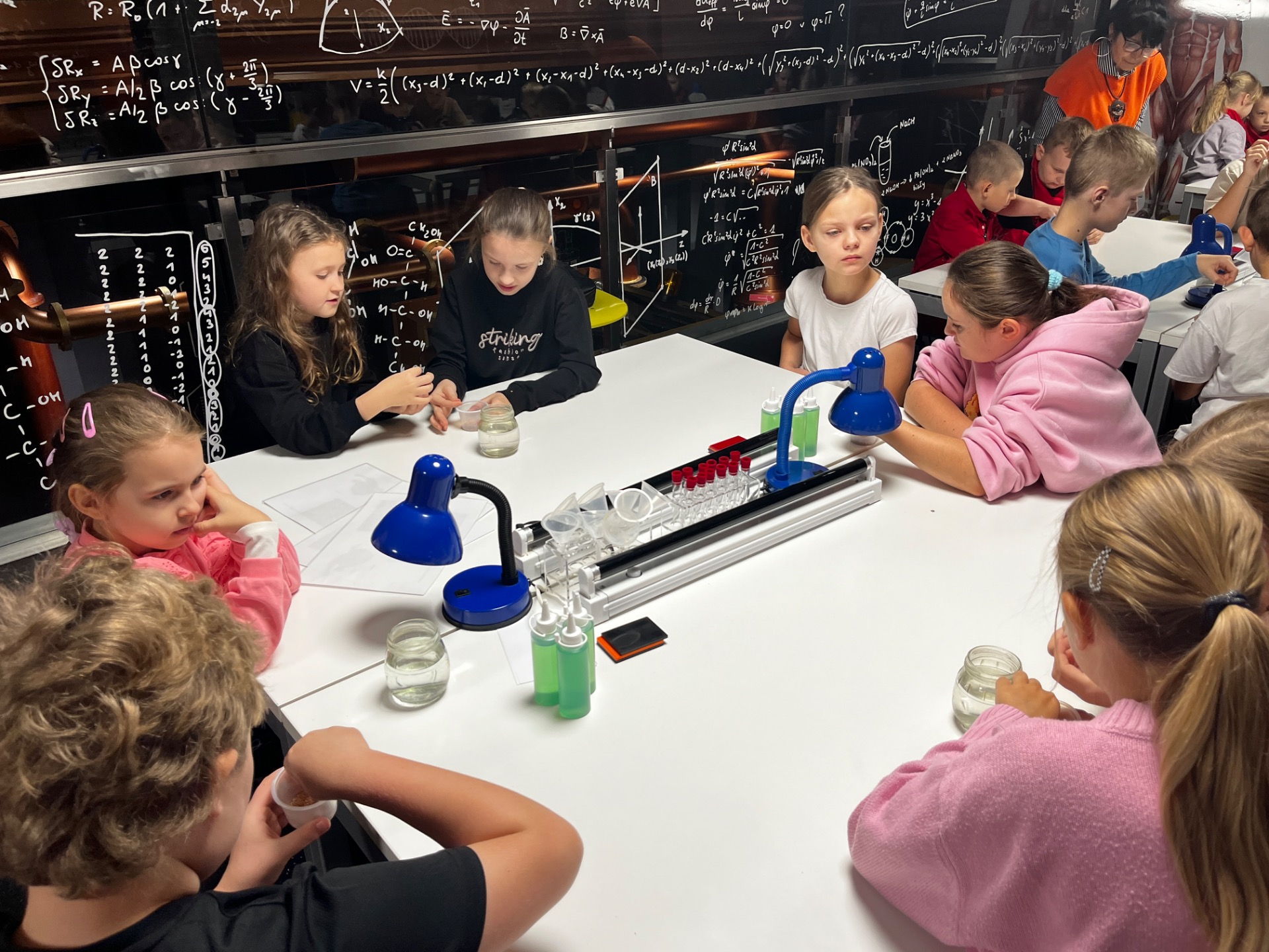 Dziś uczniowie z klasy 2 i 3 uczestniczyli w świetlnych warsztatach w Energetycznym Centrum Nauki w Kielcach . Dzieci były zachwycone świecącymi płynami i samodzielnie zrobionymi świecącymi probówkami .