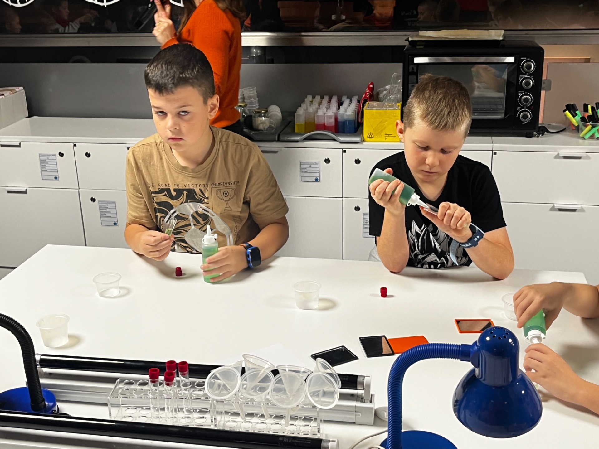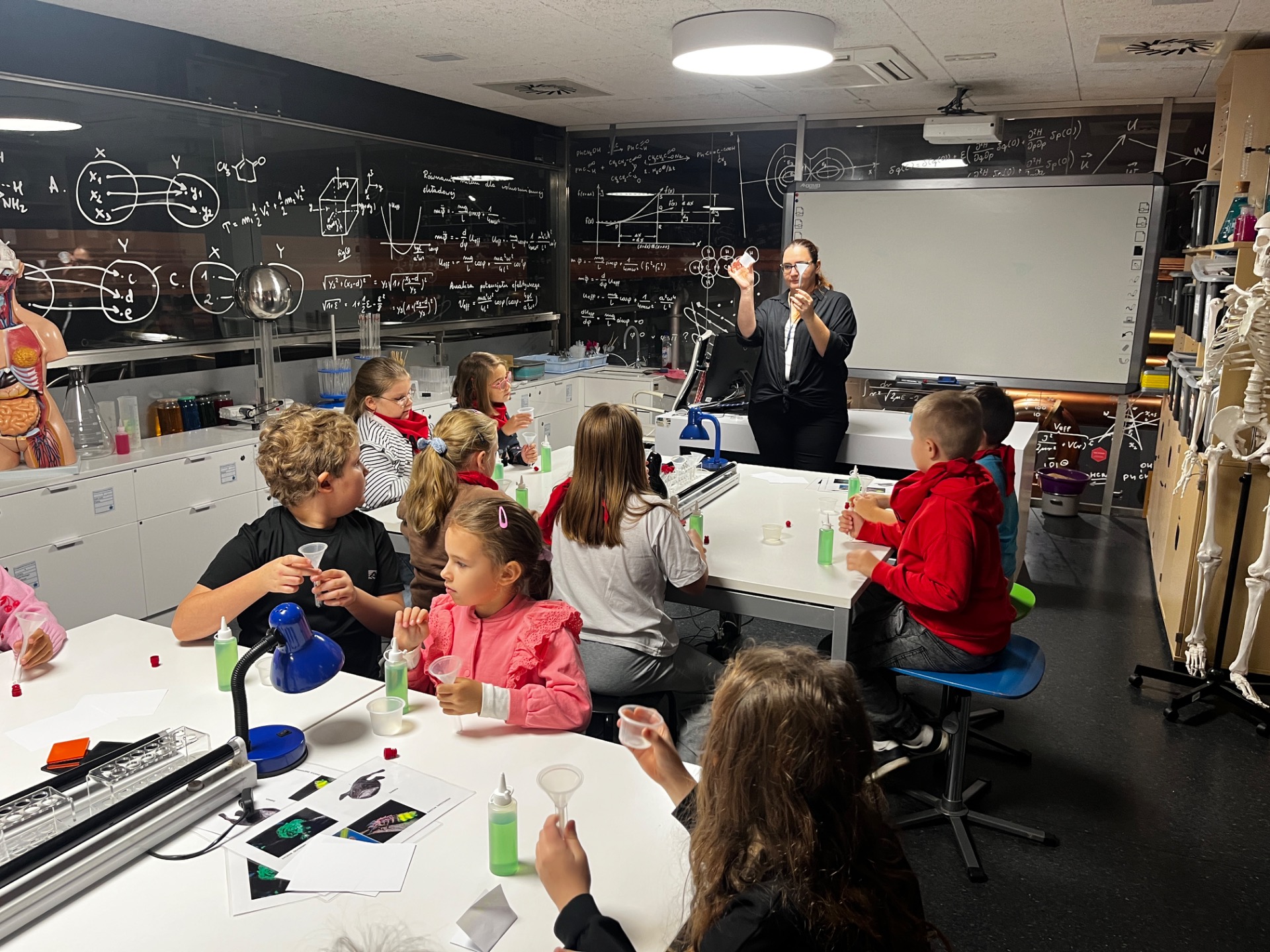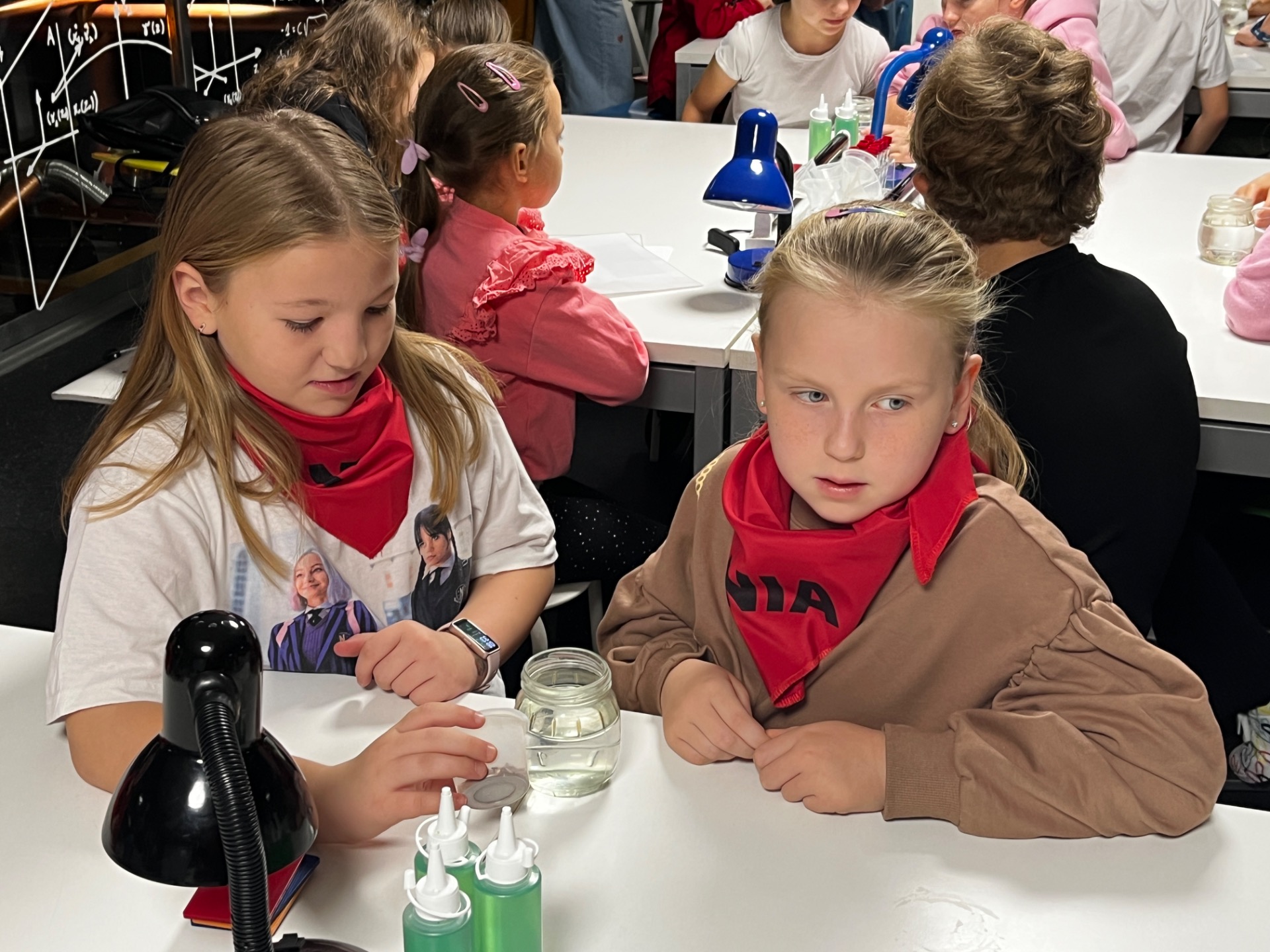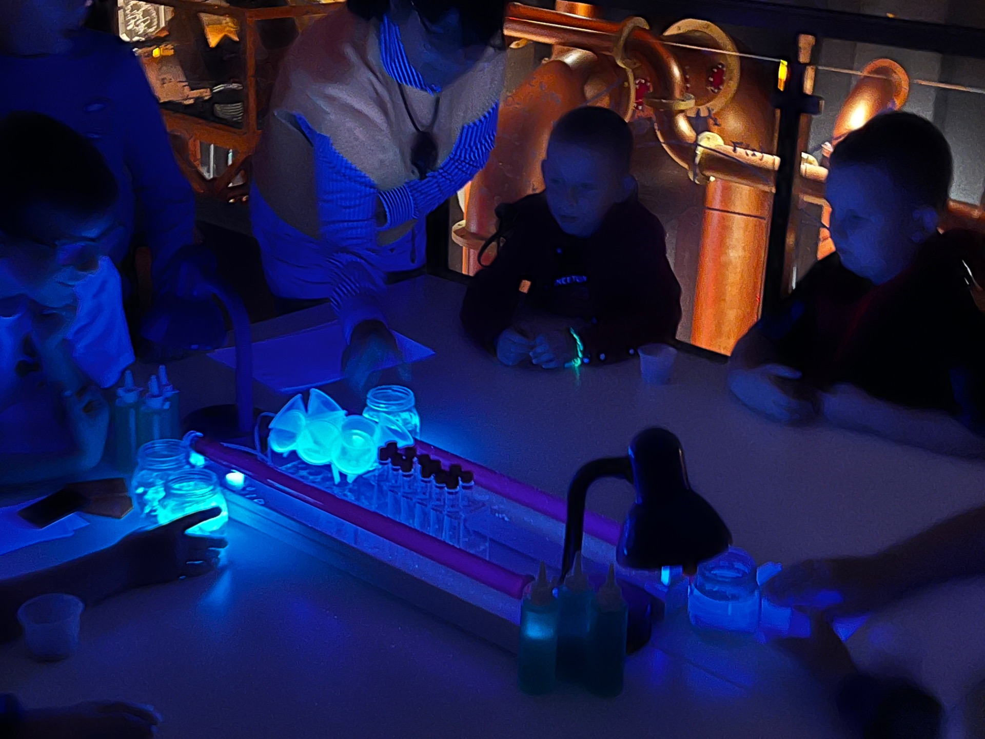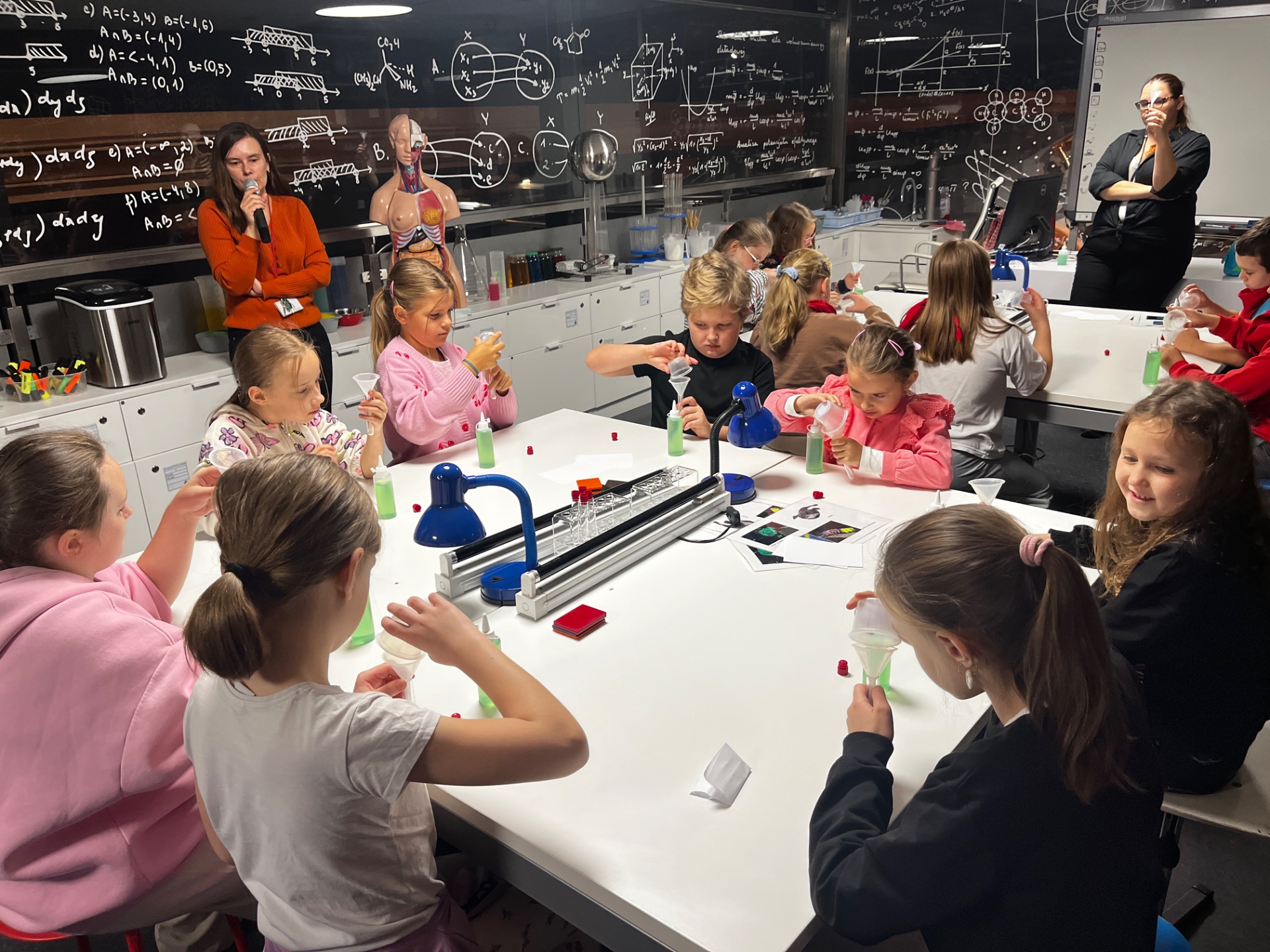 Dziś uczniowie z klasy 2 i 3 uczestniczyli w świetlnych warsztatach w Energetycznym Centrum Nauki w Kielcach . Dzieci były zachwycone świecącymi płynami i samodzielnie zrobionymi świecącymi probówkami .