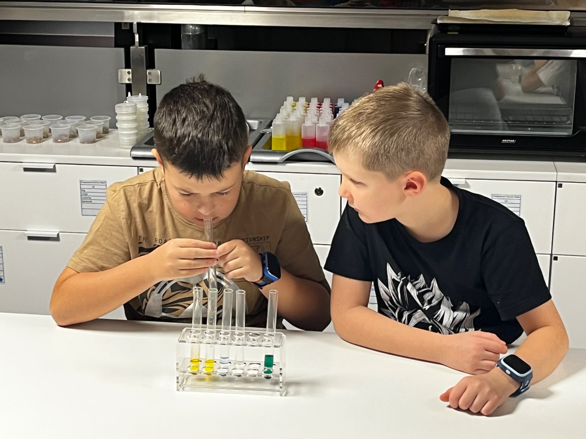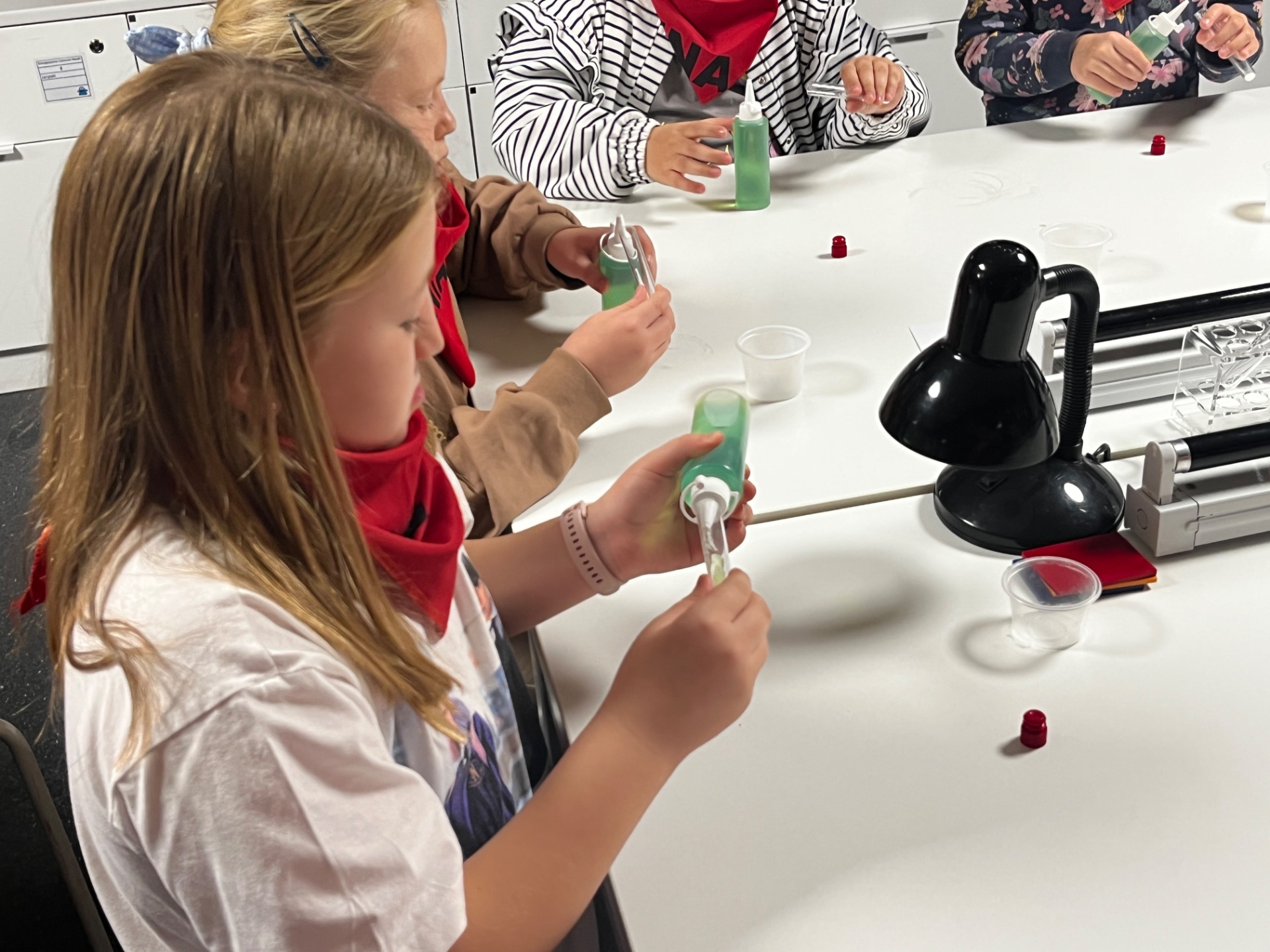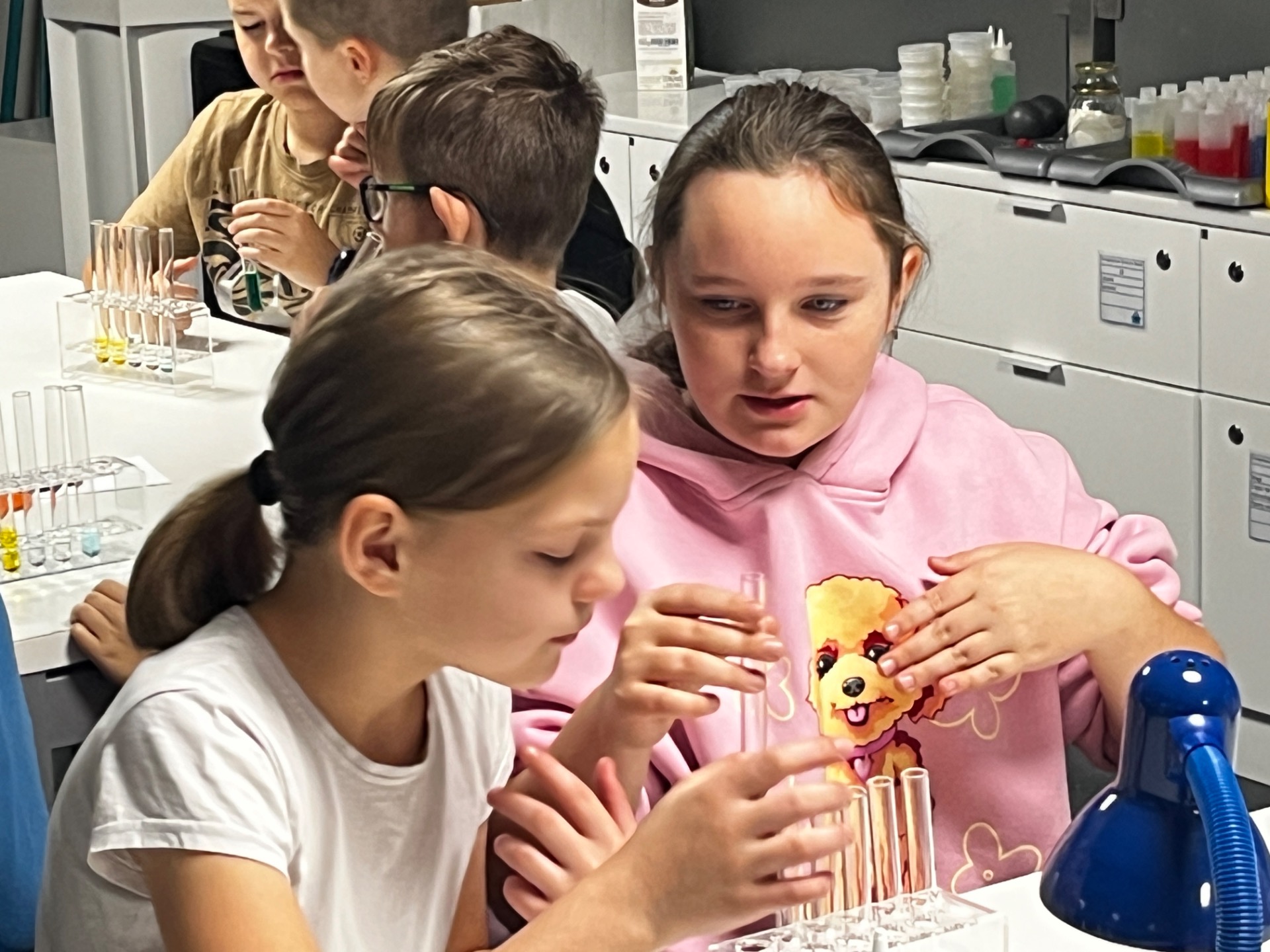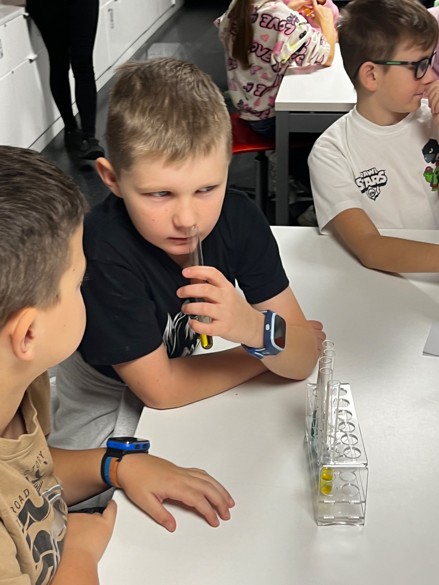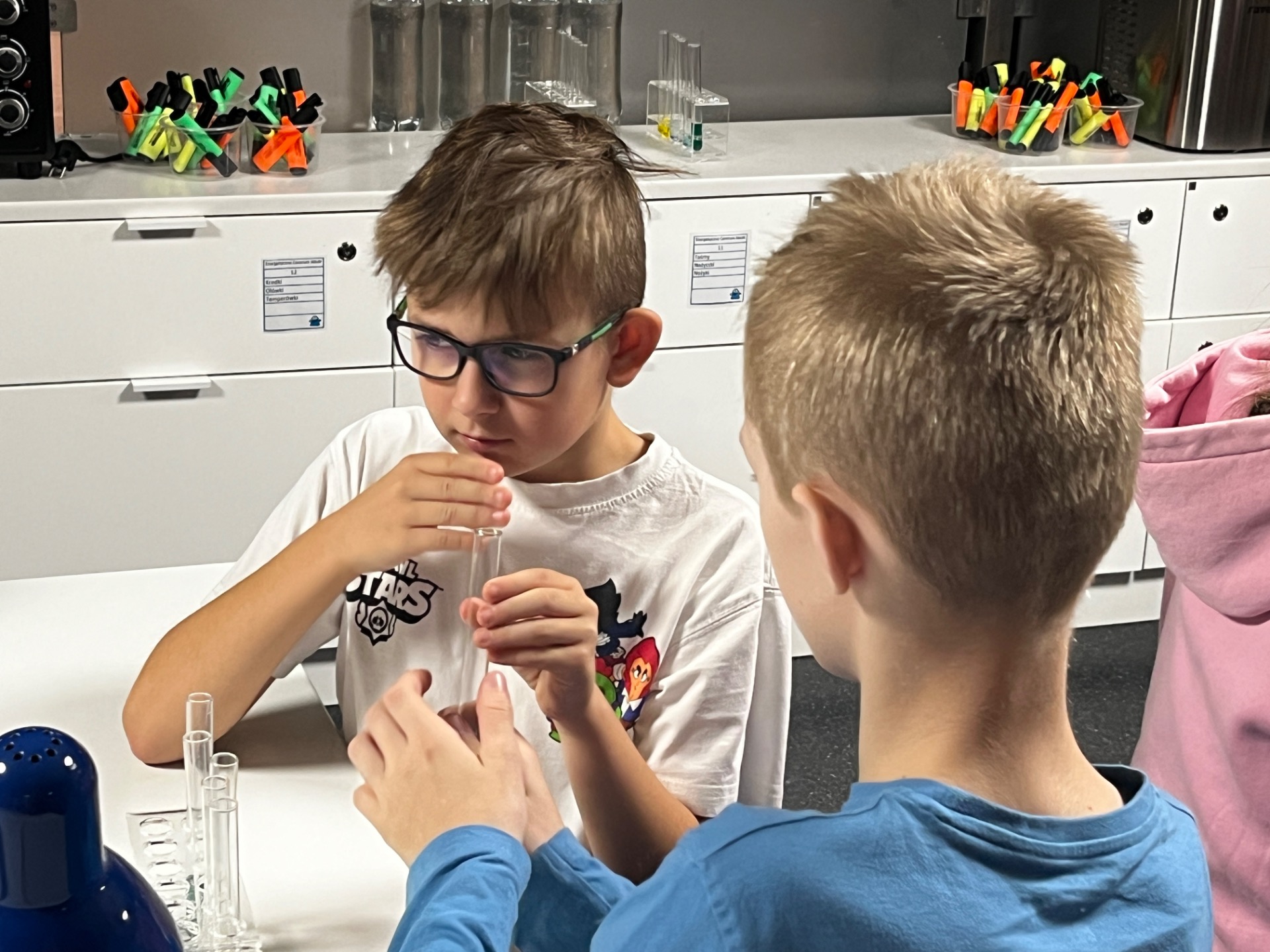 Dziś uczniowie z klasy 2 i 3 uczestniczyli w świetlnych warsztatach w Energetycznym Centrum Nauki w Kielcach . Dzieci były zachwycone świecącymi płynami i samodzielnie zrobionymi świecącymi probówkami .