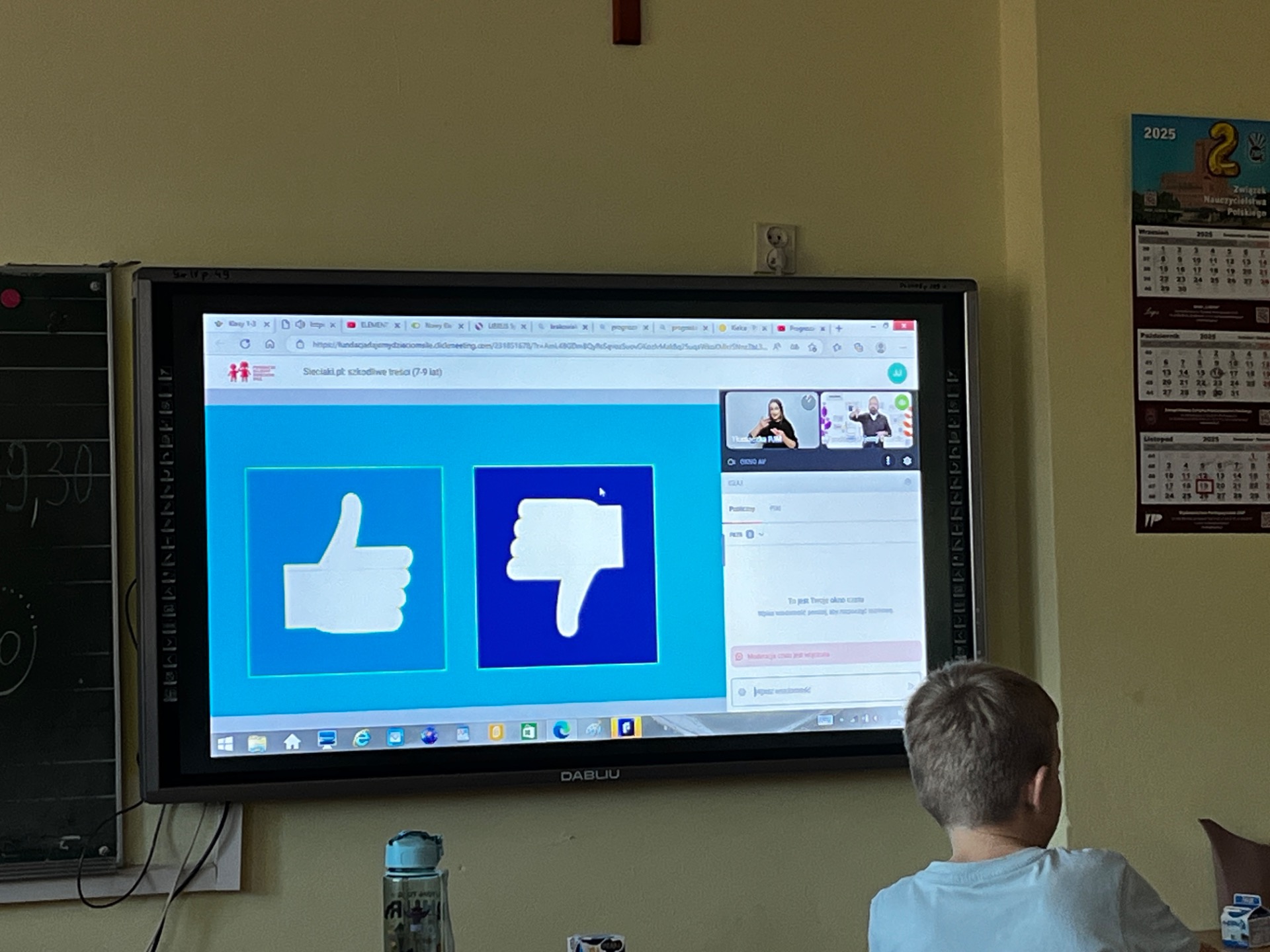 Dzisiejsze spotkanie dotyczyło szkodliwych treści, z którymi możemy się spotkać w Internecie. Dzieci mogły ocenić, które zachowania są bezpieczne, a co powinno wzbudzić ich niepokój.
