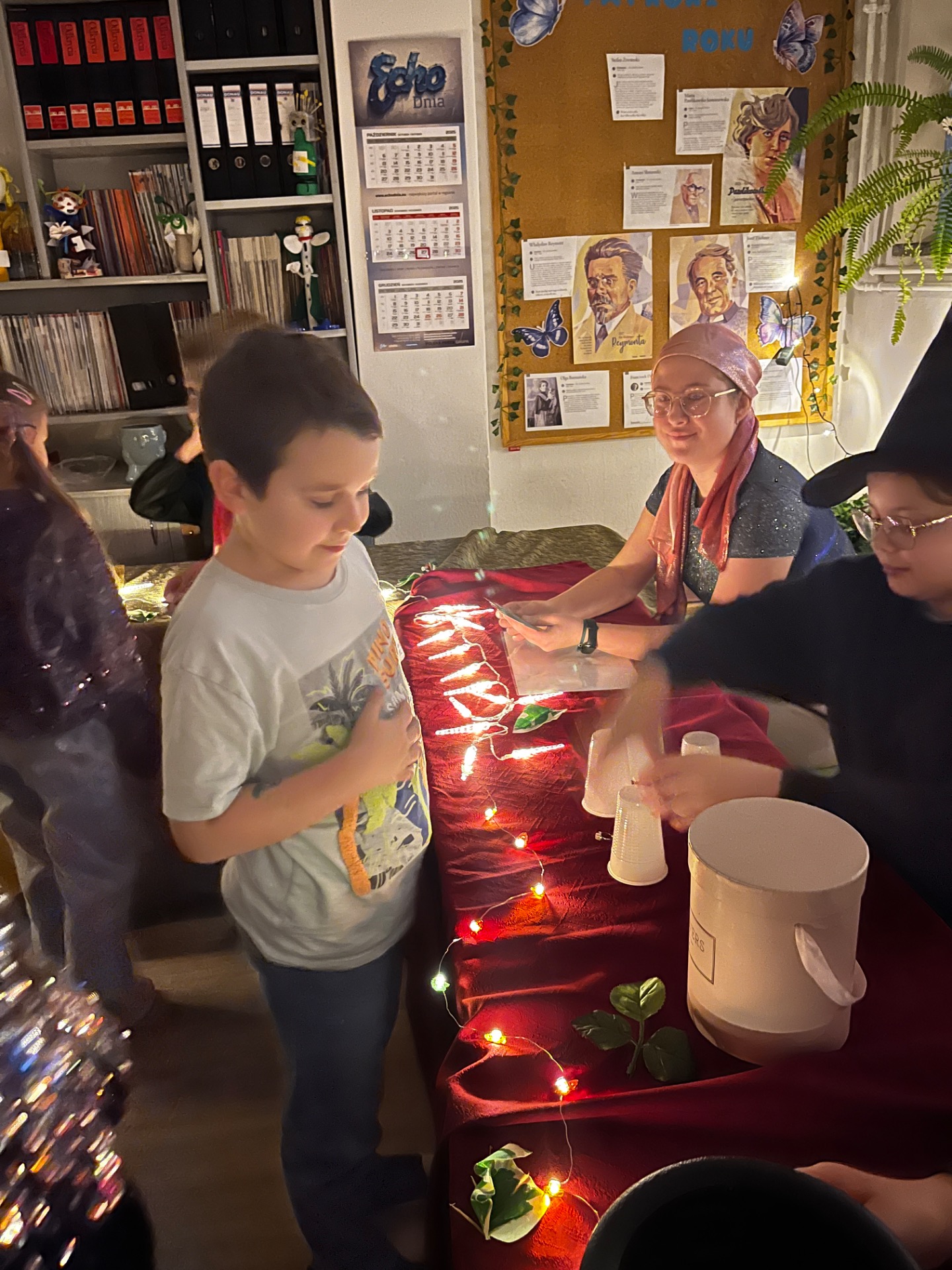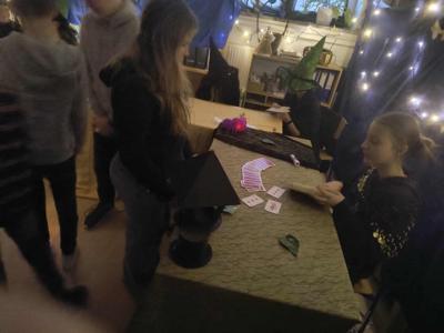 Andrzejkowy klimat zagościł w naszej szkole! Wczoraj klasy starsze miały dyskotekę, a dziś dzieci młodsze uczestniczyły w andrzejkowych aktywnościach. Oprócz poczęstunku i tańców na sali gimnastycznej były wróżby on-line oraz wizyta w komnacie wróżb, w której można było się dowiedzieć, co czeka nas w przyszłości.