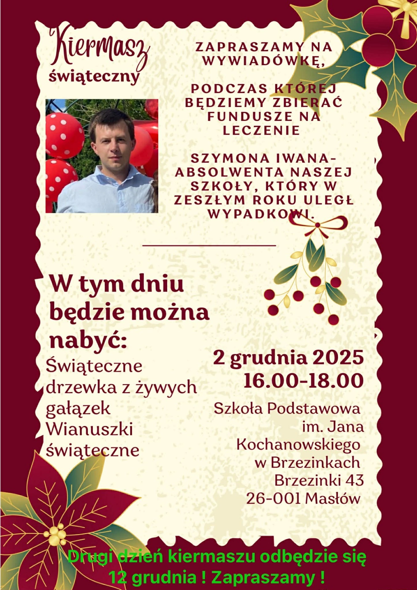 W tym roku nasza szkoła organizuje kiermasz, z którego dochód przeznaczony zostanie na leczenie naszego absolwenta - Szymona Iwana.