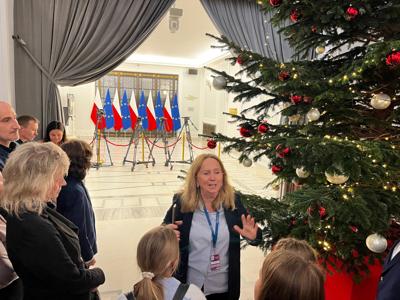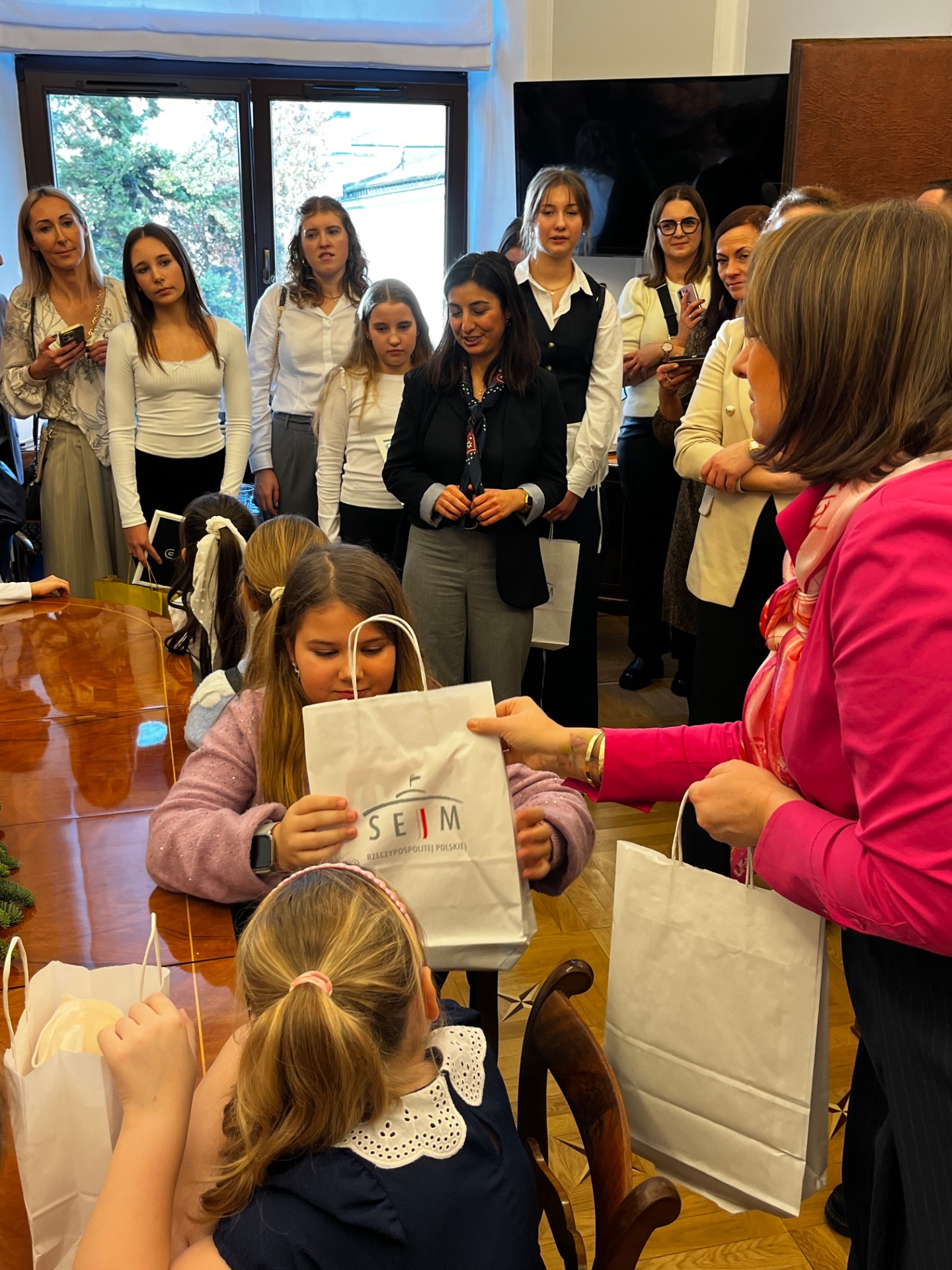 Po odsłonięciu wystawy na wszystkich czekały niespodzianki od pani Wicemarszałek oraz zwiedzanie Sejmu.