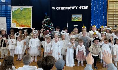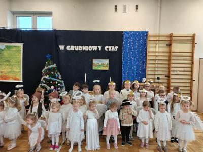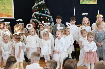🎄Rozpoczęły go oczywiście przedszkolaki z grup Krasnoludki, Biedronki i Sówki. Jak zawsze uraczyły gości śpiewem i grą na instrumentach.