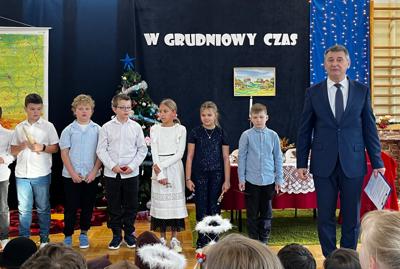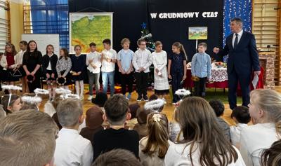 🎄Bardzo się cieszymy, że nasze zaproszenie przyjęli: Tomasz Lato, wójt gminy Masłów, Anna Kowalczyk, dyrektor Centrum Usług Wspólnych, Wojciech Purtak, dyrektor Centrum Edukacji i Kultury"Szklany Dom". Były z nami także: Kinga Fąfara, przewodnicząca Rady Rodziców i Justyna Nawrocka-Dusza, sołtyska Barczy. Cieszymy się, że pojawili się także byli i emerytowani pracownicy szkoły. Wszystkich witał dyrektor Zbigniew Długosz, a goście złożyli życzenia zarówno dzieciom, jak i rodzicom i nauczycielom.