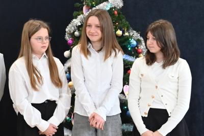 🎄Na zakończenie po raz pierwszy wystąpił nasz nowy chór. Dziewczęta i chłopcy z klasy VI i VI zaprezentowali dwie świąteczne piosenki, a za przygotowanie chóru odpowiada pani Ewa Blachut.