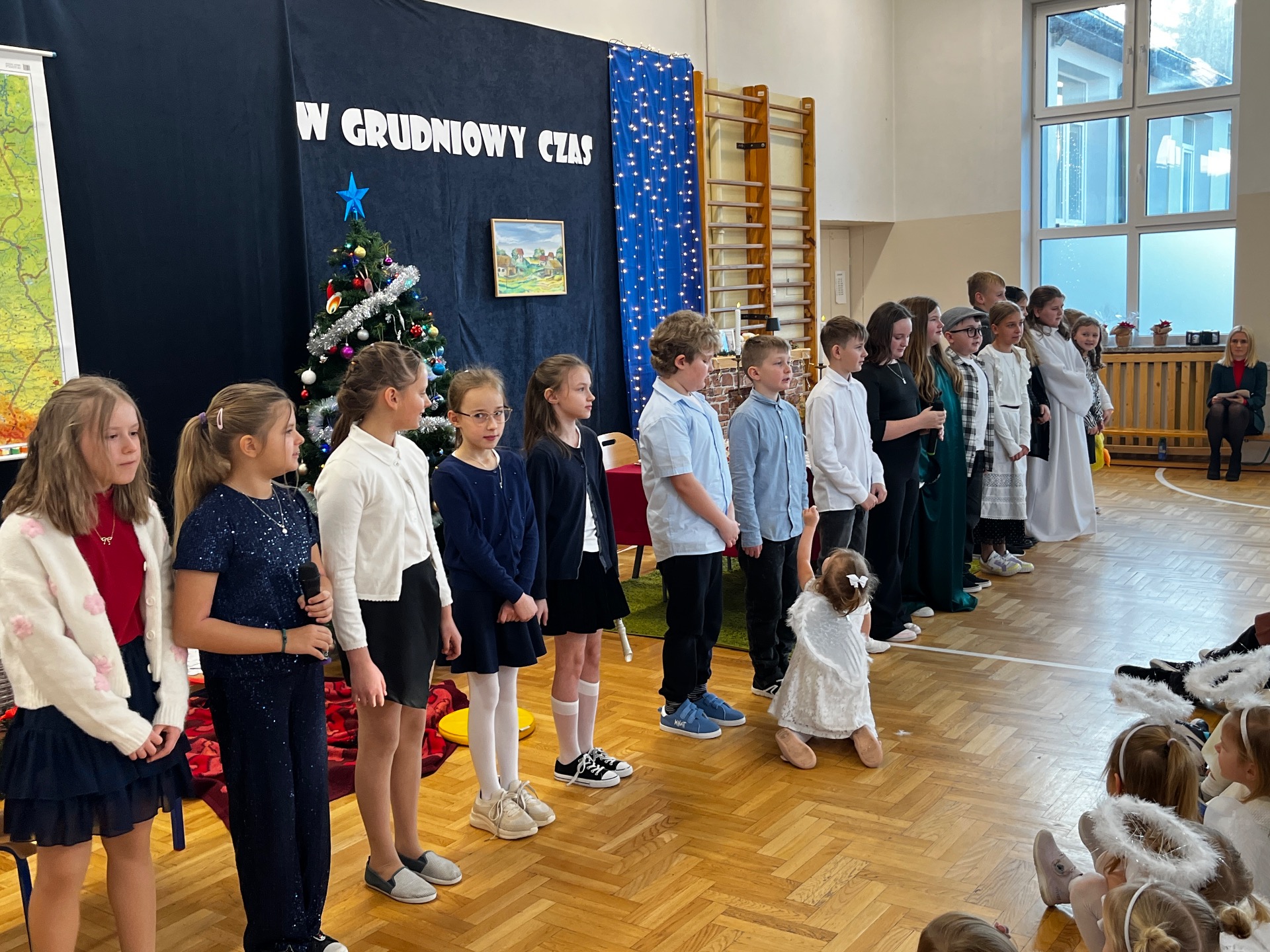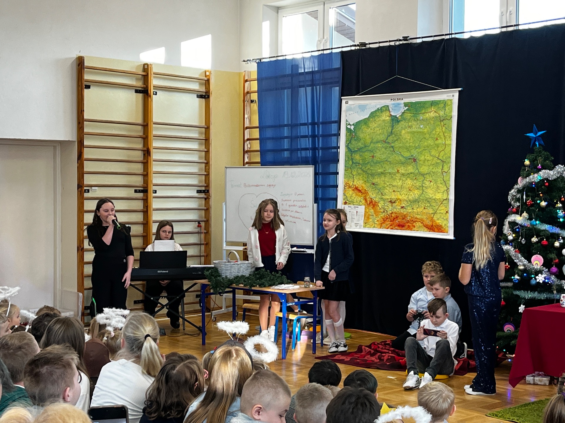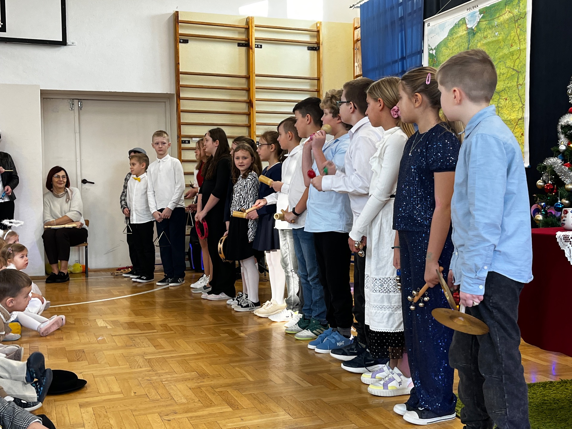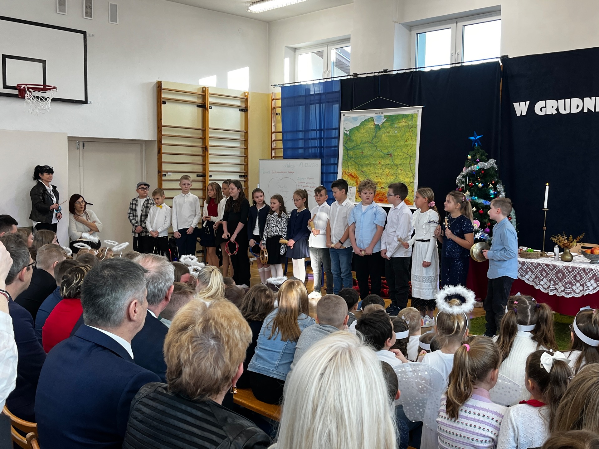 🎄Zgodnie z tradycją, w ostatni dzień przed przerwą świąteczną, w naszej szkole było bardzo uroczyście. Wszyscy zgromadzili się na sali gimnastycznej, gdzie odbył się występ artystyczny.