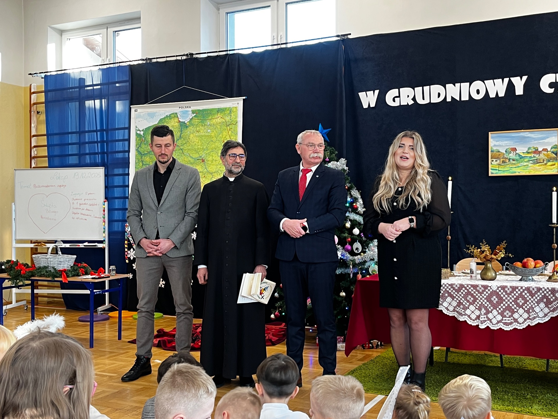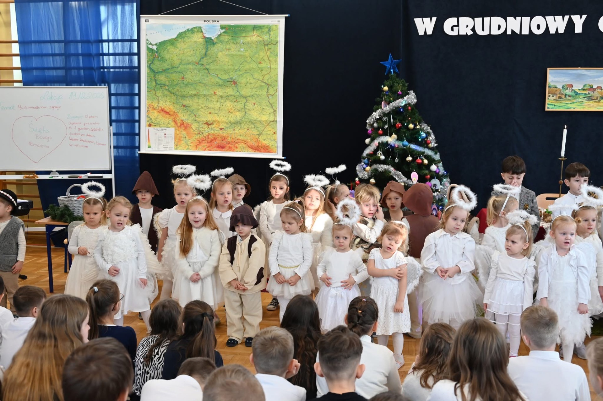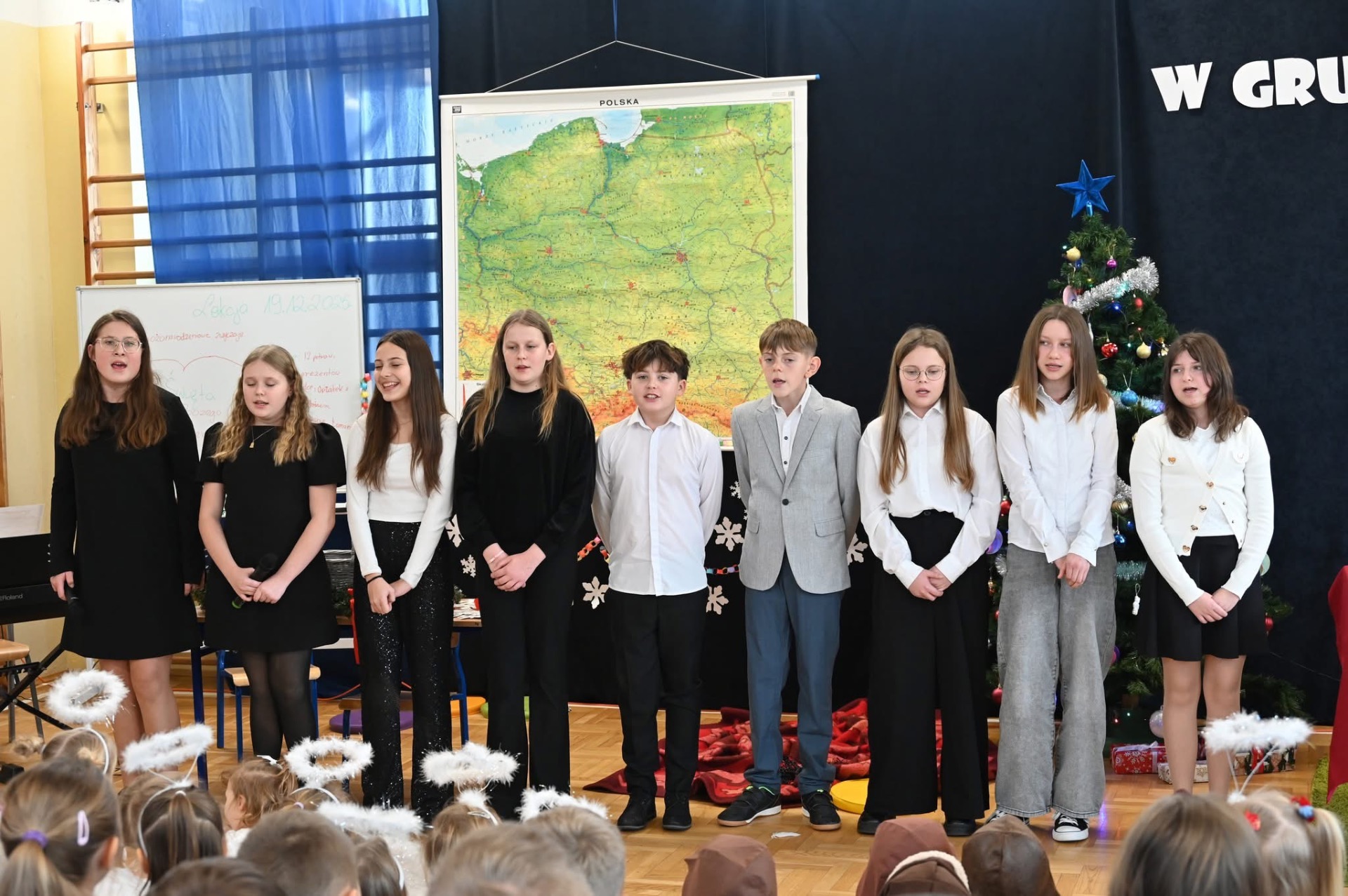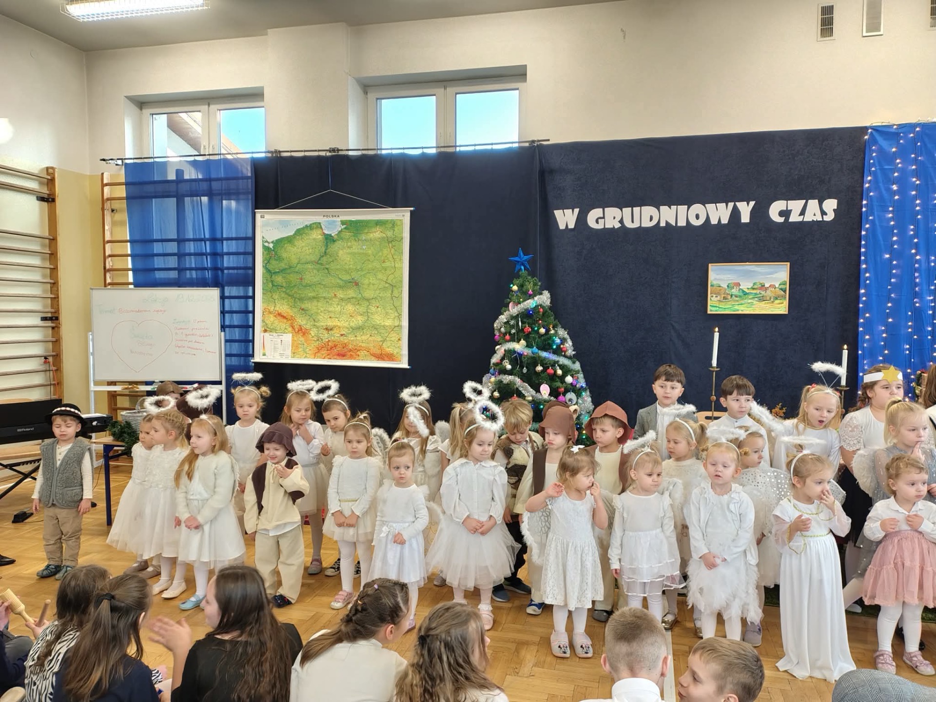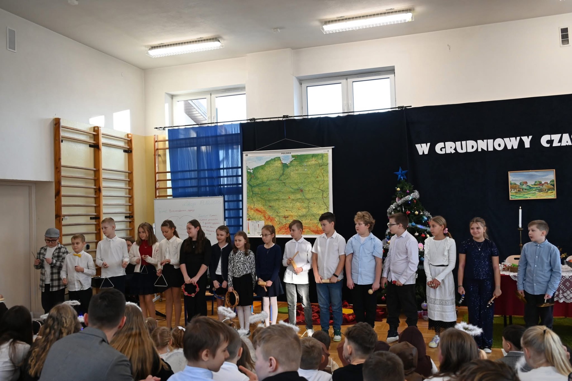 🎄Zgodnie z tradycją, w ostatni dzień przed przerwą świąteczną, w naszej szkole było bardzo uroczyście. Wszyscy zgromadzili się na sali gimnastycznej, gdzie odbył się występ artystyczny.