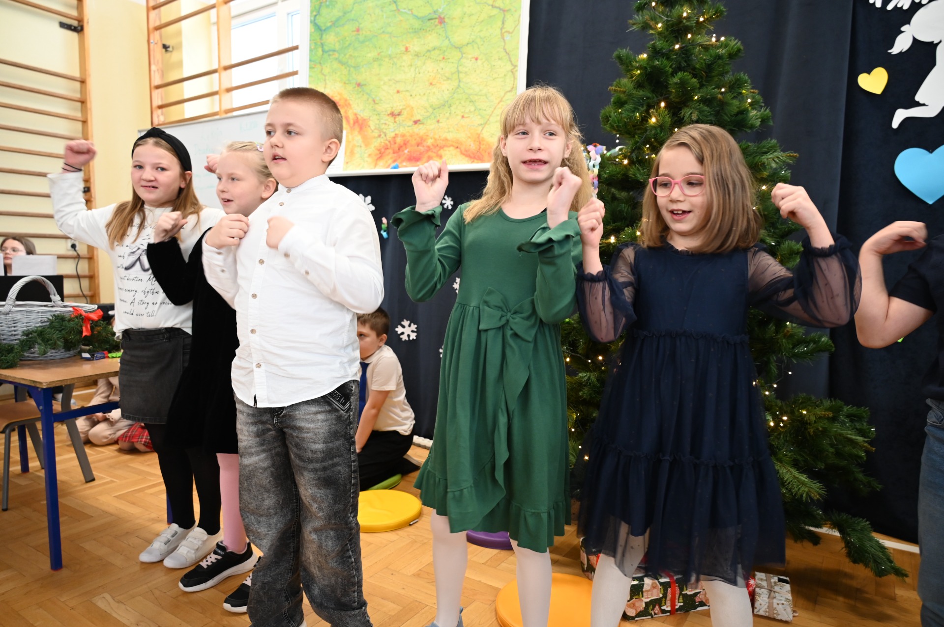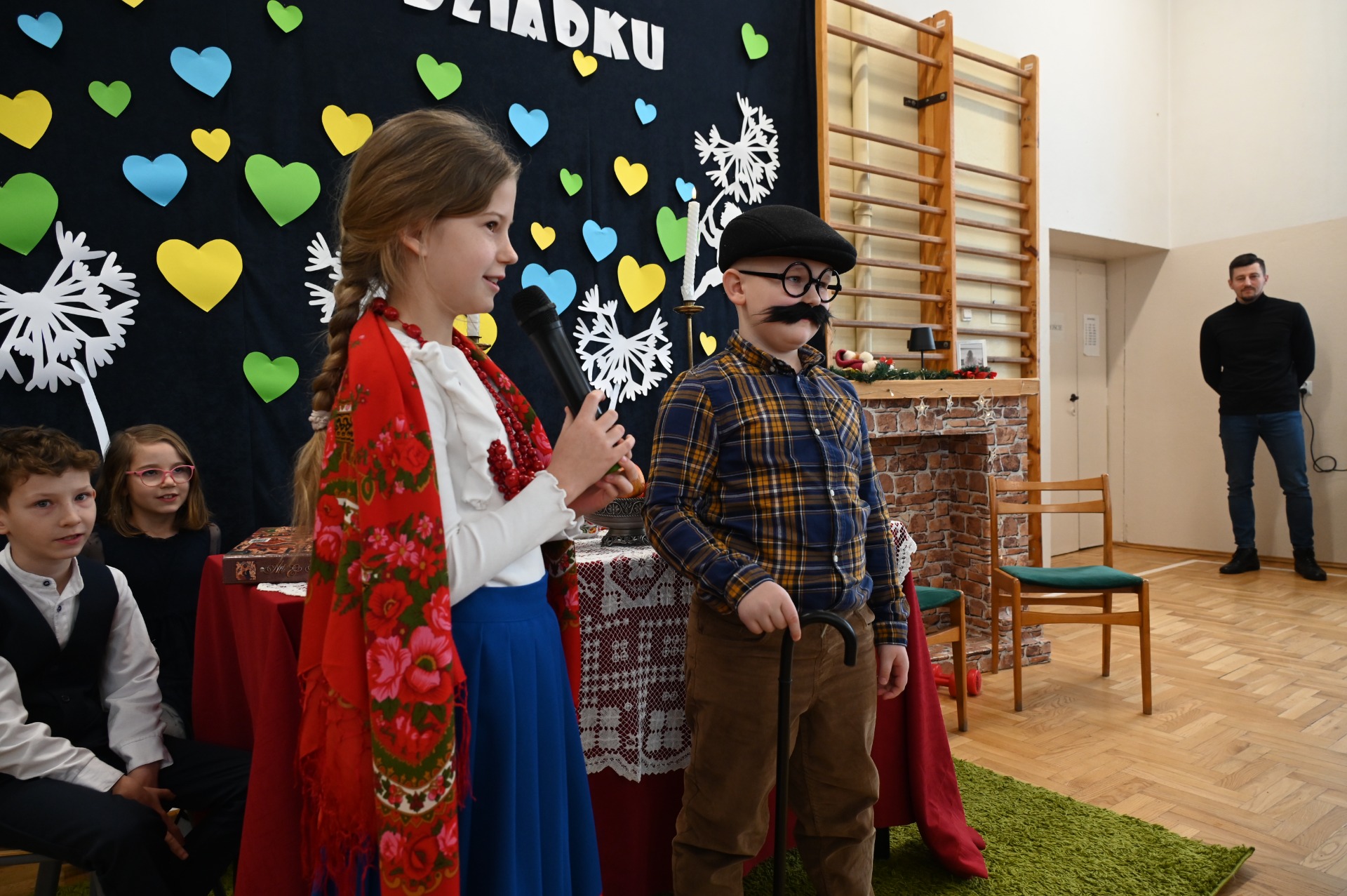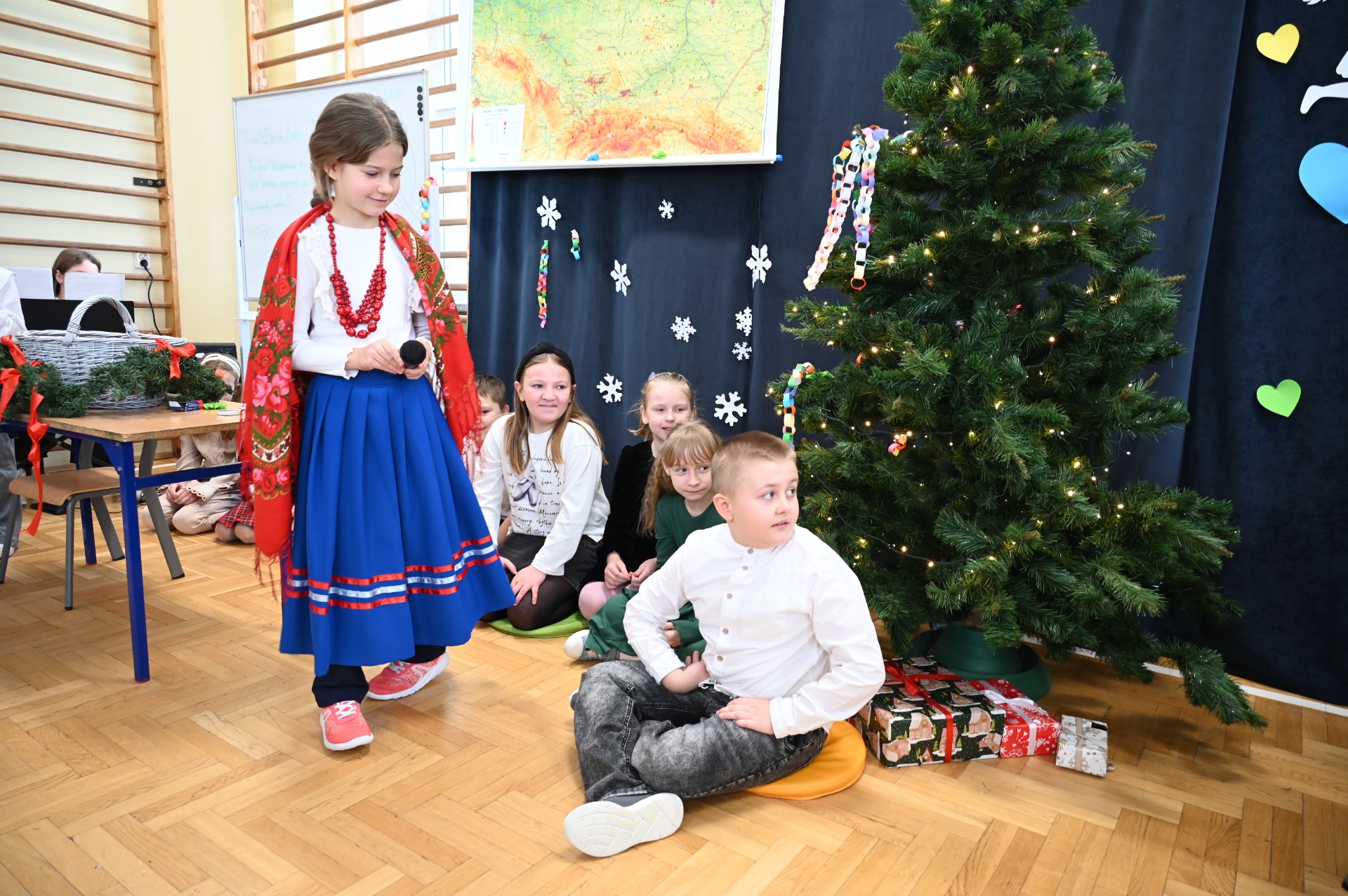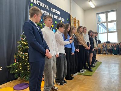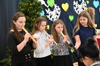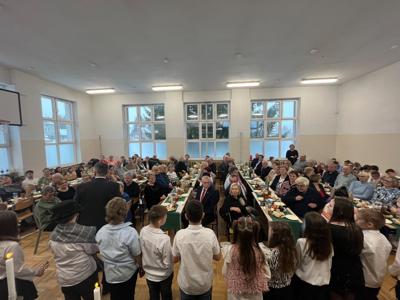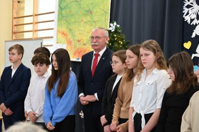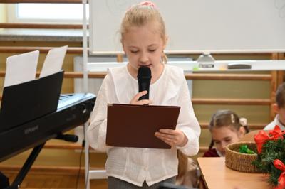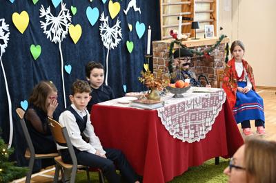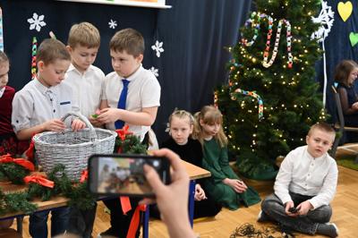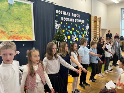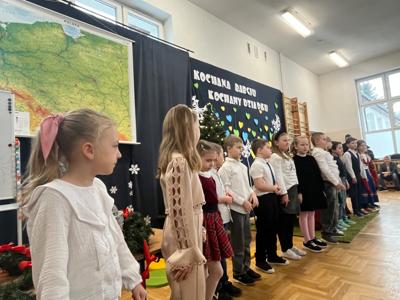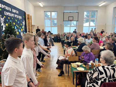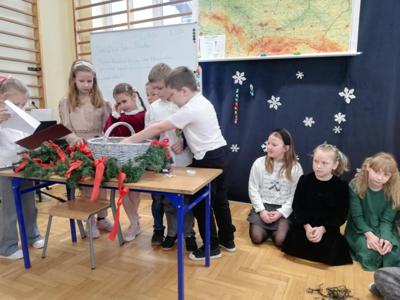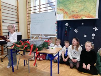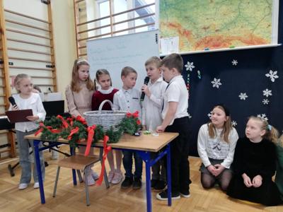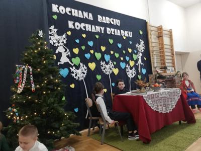 Wszystkich gości przywitał wójt gminy Masłów- Tomasz Lato oraz dyrektor szkoły- pan Zbigniew Długosz. Każda klasa zaprezentowała swój program artystyczny. Klasa 3 i 4 przedstawiła jasełka wprowadzając nas w zadumę i miły nastrój. Klasa 2 wystawiła muzyczno- humorystyczne scenki w stylu "M jak Miłość", a uczniowie z klas 5 i 6 zaśpiewały piosenki i złożyły życzenia. Na zakończenie wszyscy uroczyście odśpiewali STO LAT oraz wręczyli samodzielnie wykonane upominki oraz laurki.