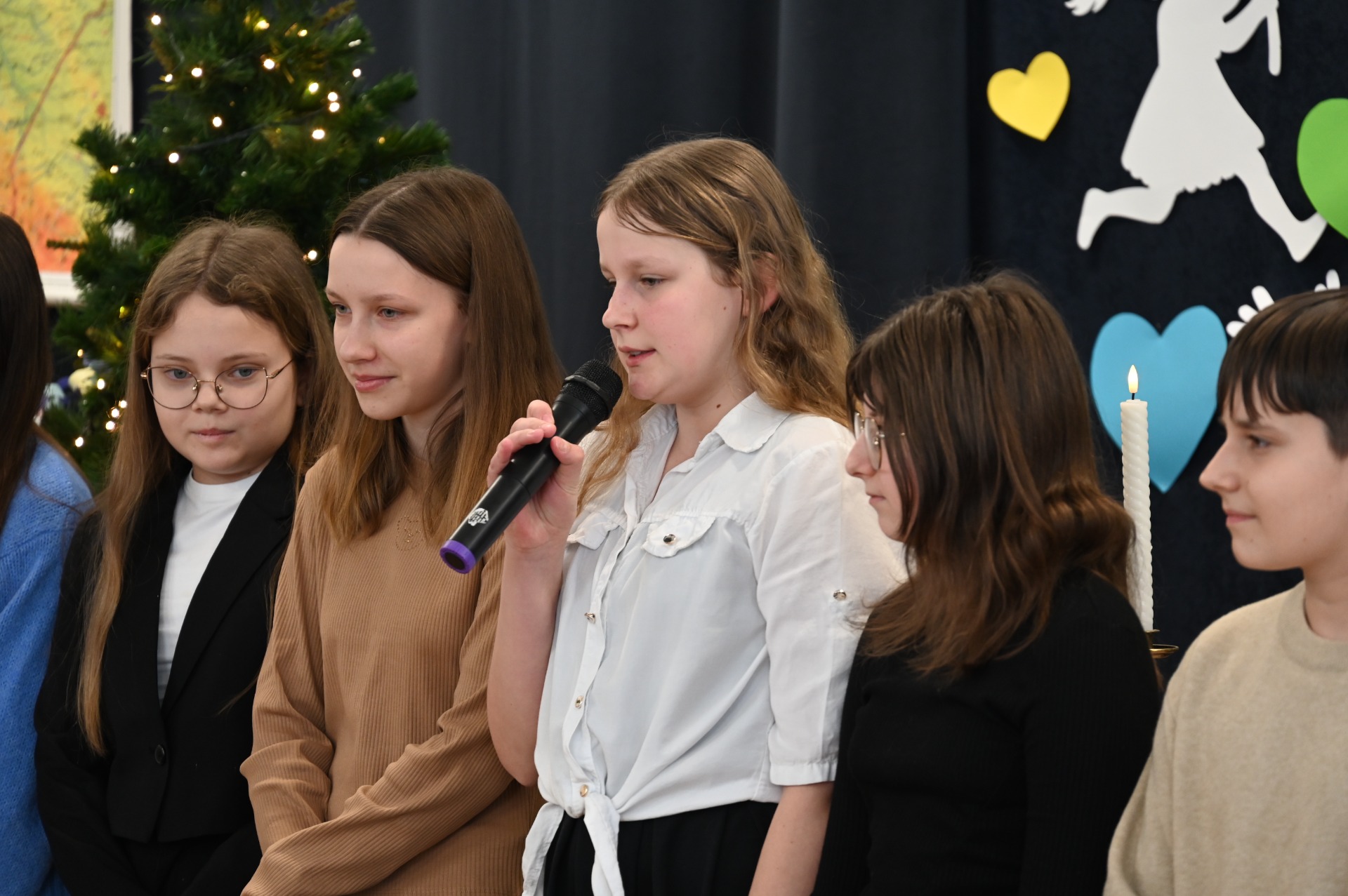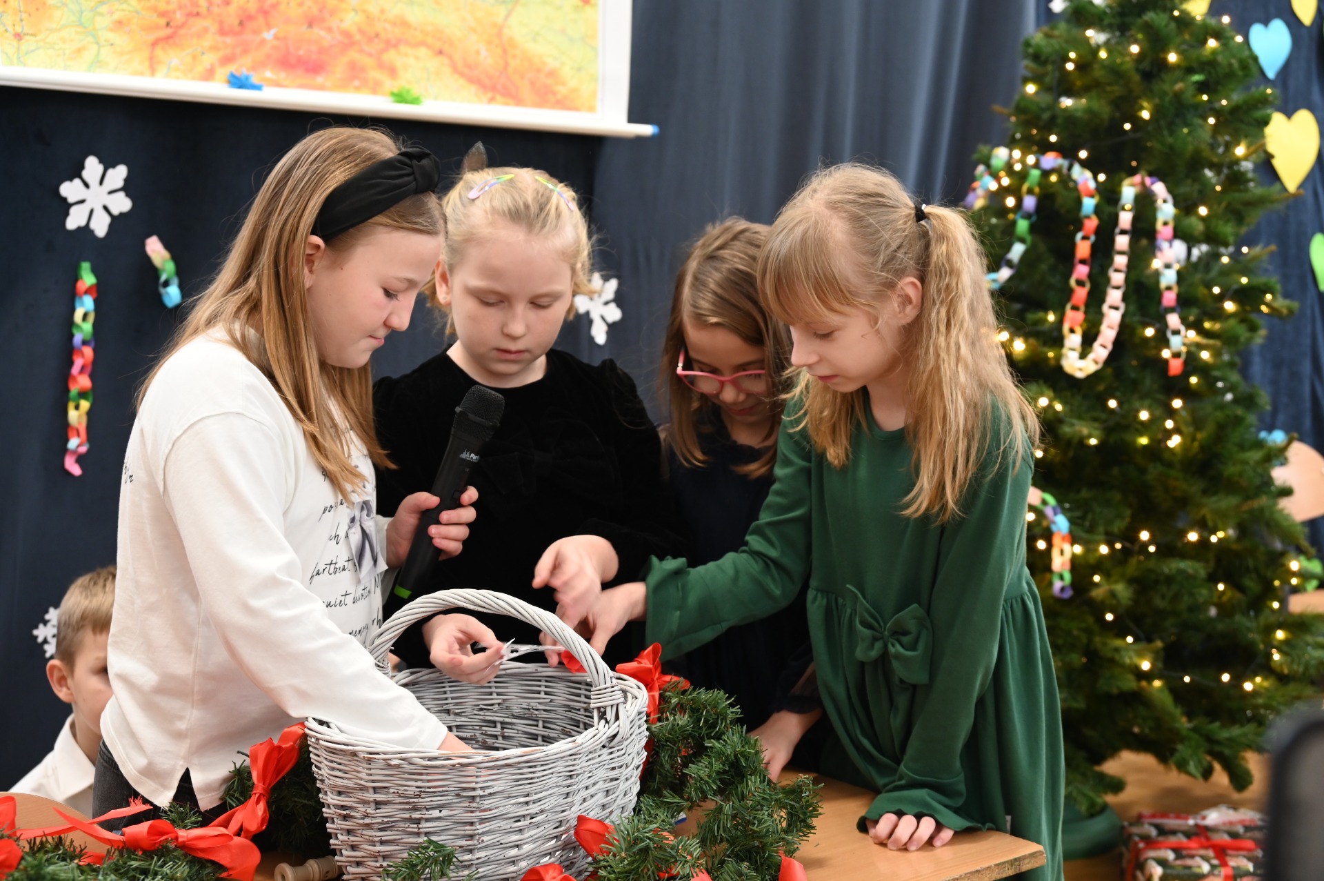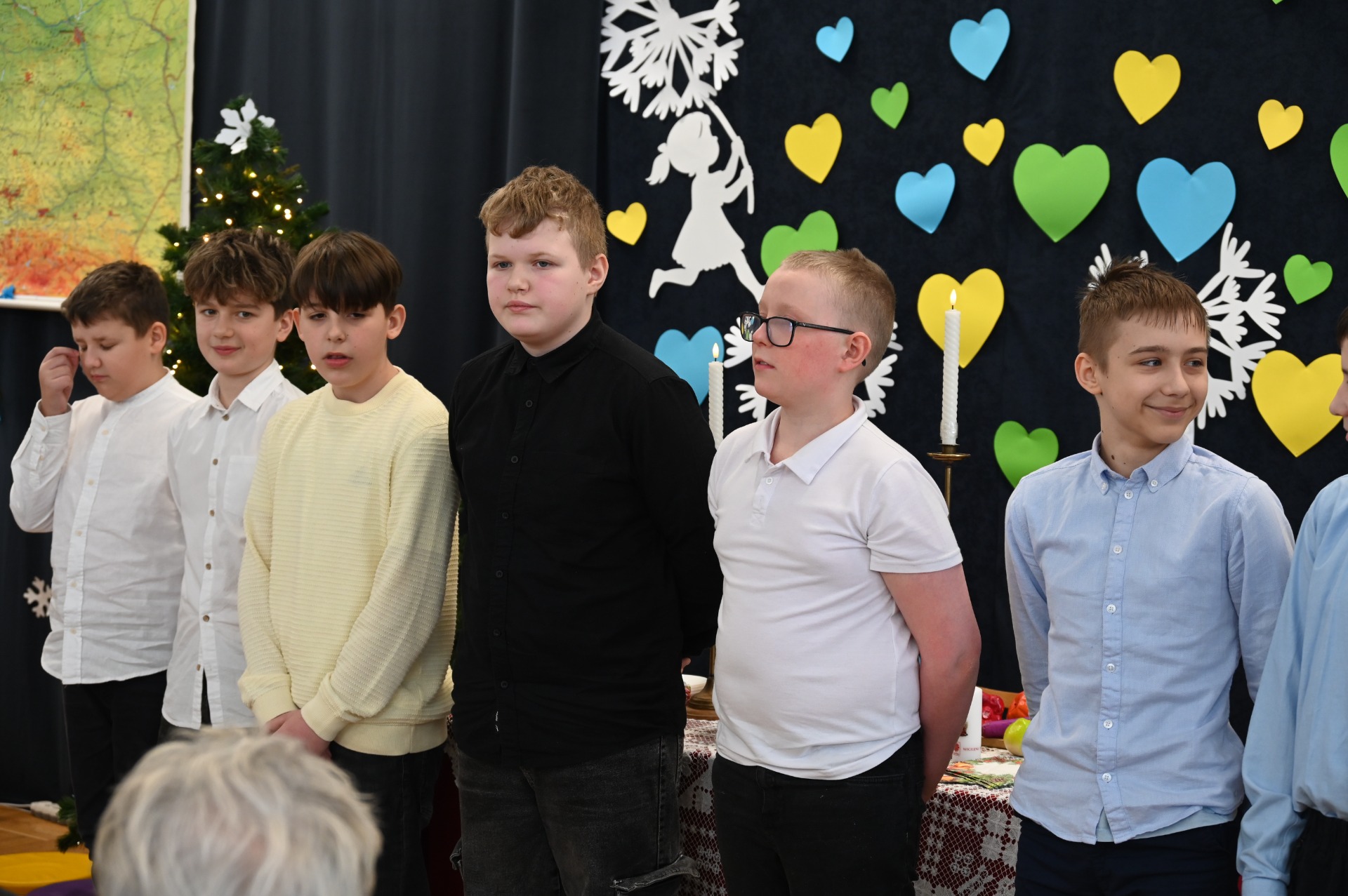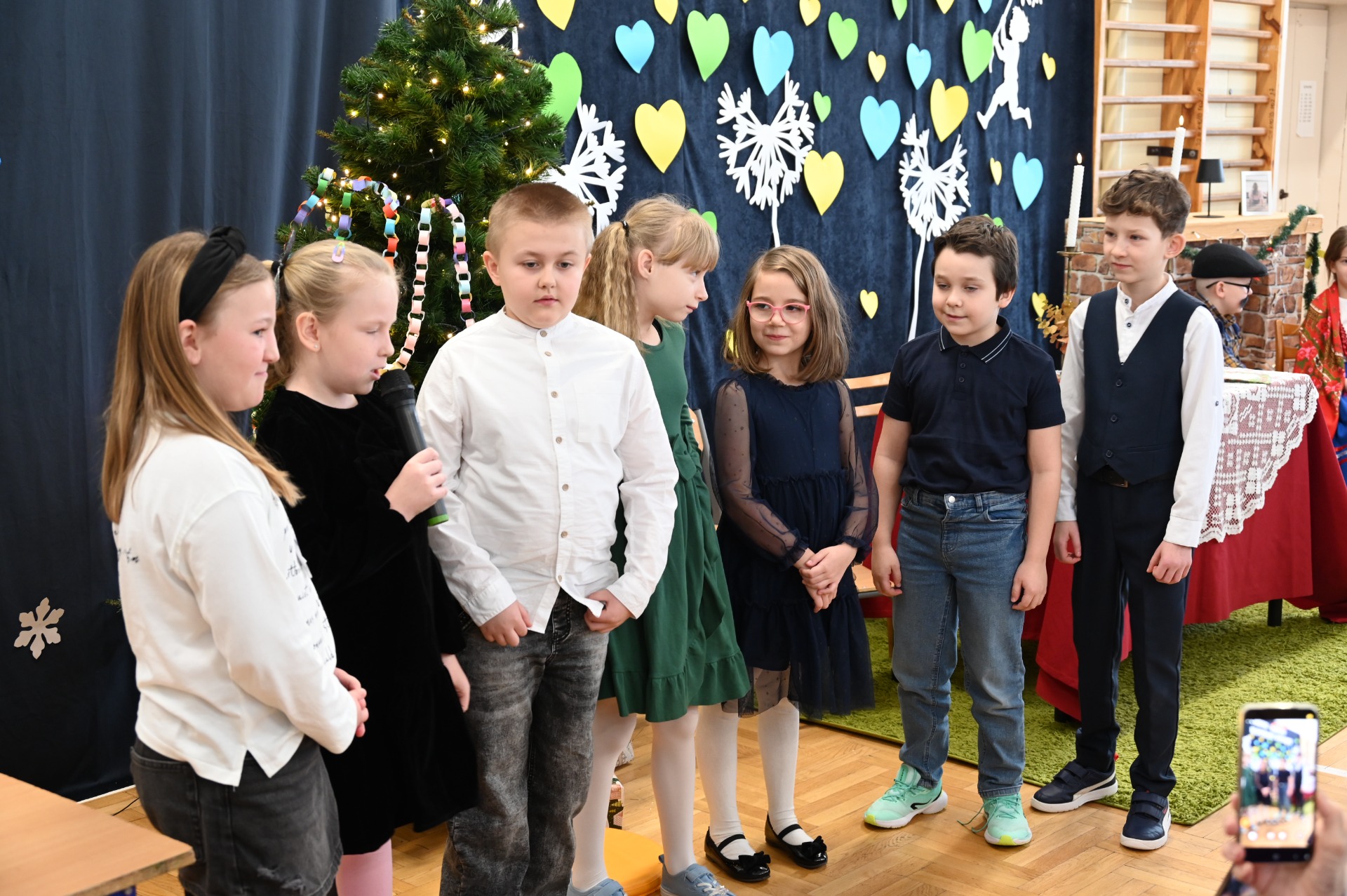 Wszystkich gości przywitał wójt gminy Masłów- Tomasz Lato oraz dyrektor szkoły- pan Zbigniew Długosz. Każda klasa zaprezentowała swój program artystyczny. Klasa 3 i 4 przedstawiła jasełka wprowadzając nas w zadumę i miły nastrój. Klasa 2 wystawiła muzyczno- humorystyczne scenki w stylu "M jak Miłość", a uczniowie z klas 5 i 6 zaśpiewały piosenki i złożyły życzenia. Na zakończenie wszyscy uroczyście odśpiewali STO LAT oraz wręczyli samodzielnie wykonane upominki oraz laurki.