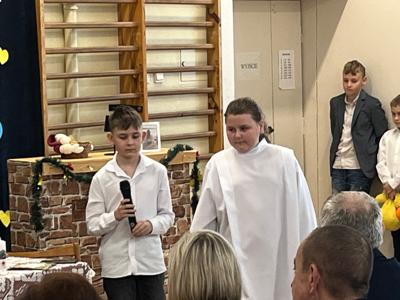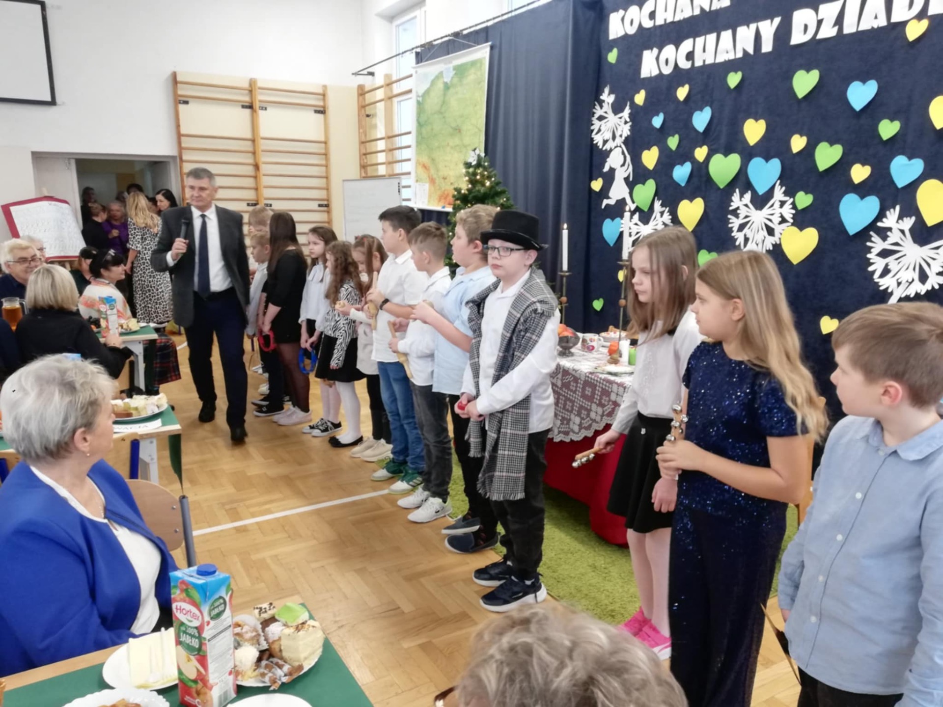 Pan dyrektor złożył serdeczne podziękowania przewodniczącej Rady Rodziców- pani Kindze Fąfarze oraz wszystkim rodzicom, którzy zaanagażowali się w przygotowanie poczęstunku dla babć i dziadków.