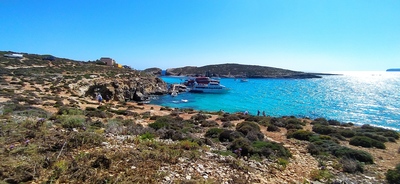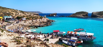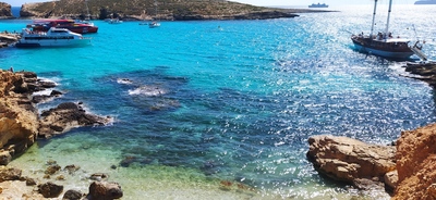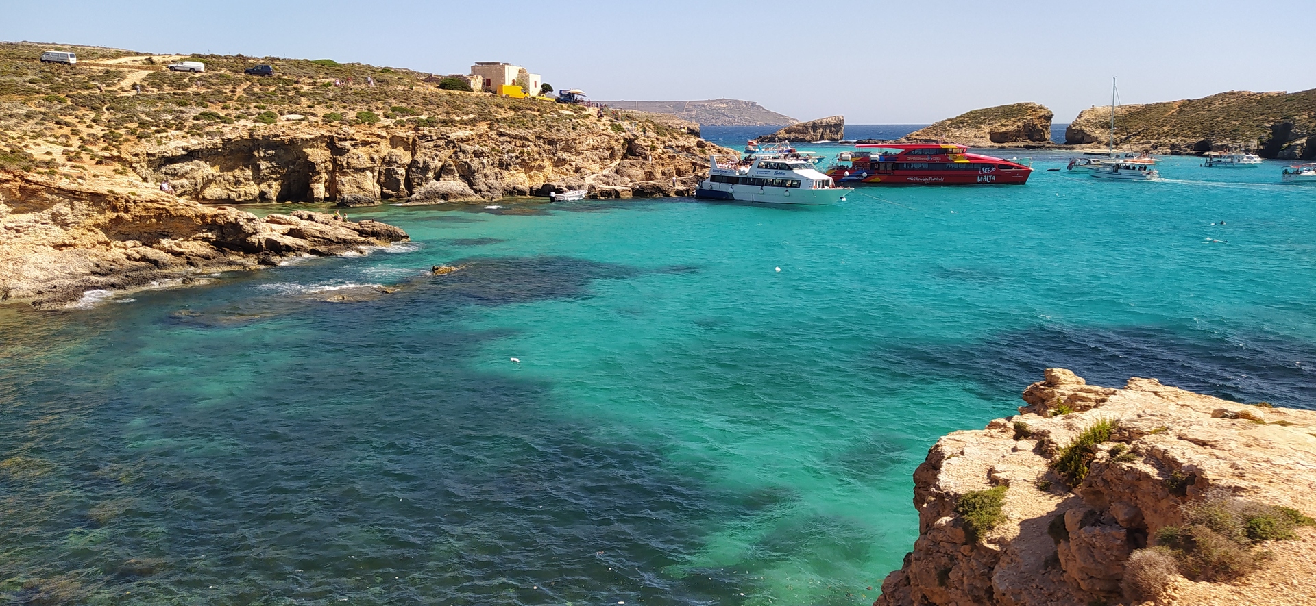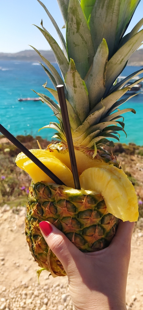 Następnie popłynęliśmy na malutką wyspę Comino (obecnie mieszkają na niej 2 osoby!). Błękitna Laguna zapierała dech w piersiach. Niebieska woda w połączeniu z pięknymi jaskiniami zrobiły ogromne wrażenie! Dodatkową atrakcją były soki podawane w ananasie :)